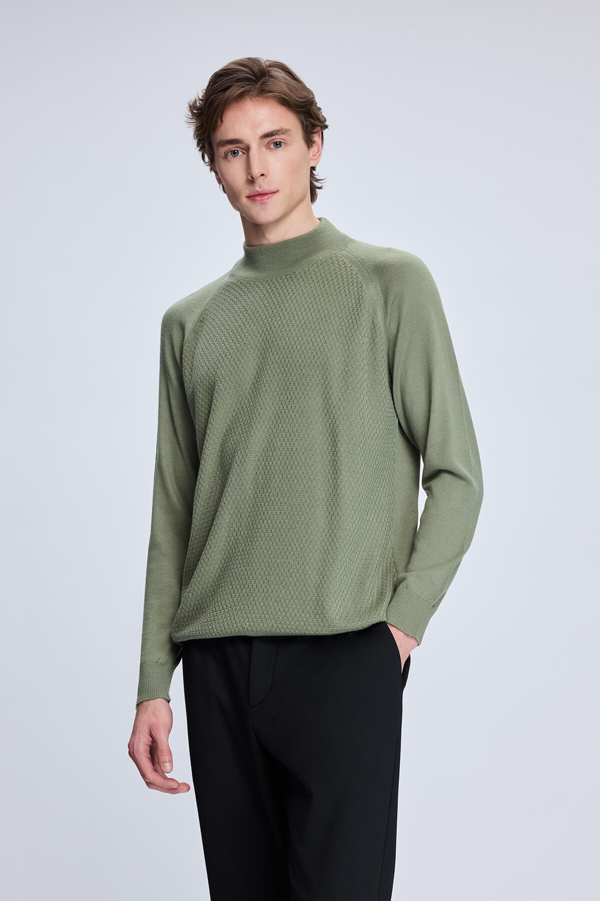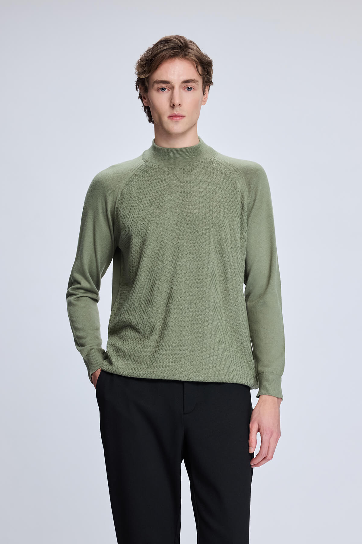 Haki Regular Fit Jakarlı Yarım Balıkçı Yaka Yünlü Kazak