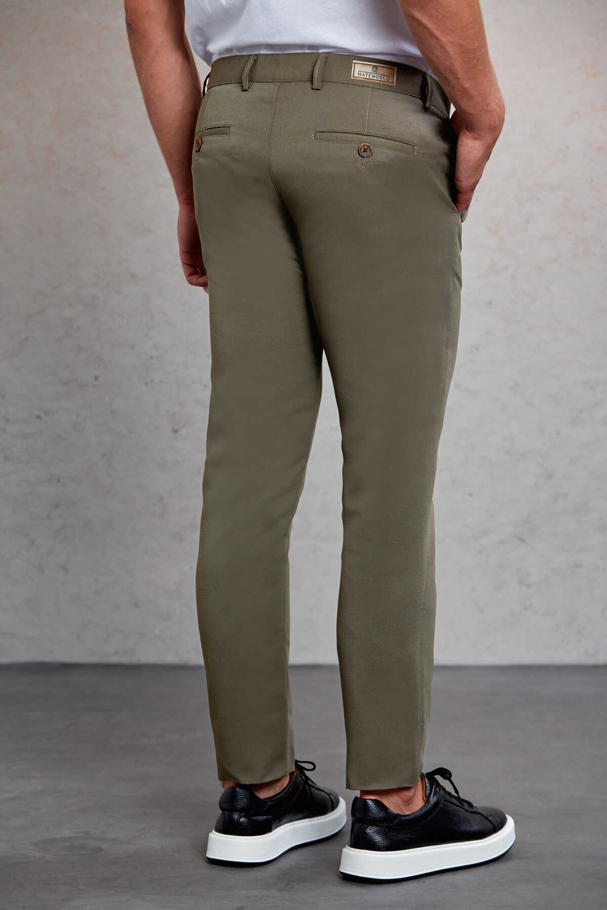 Haki Slim Fit Desenli Yandan Cep Kanvas Pantolon - 6