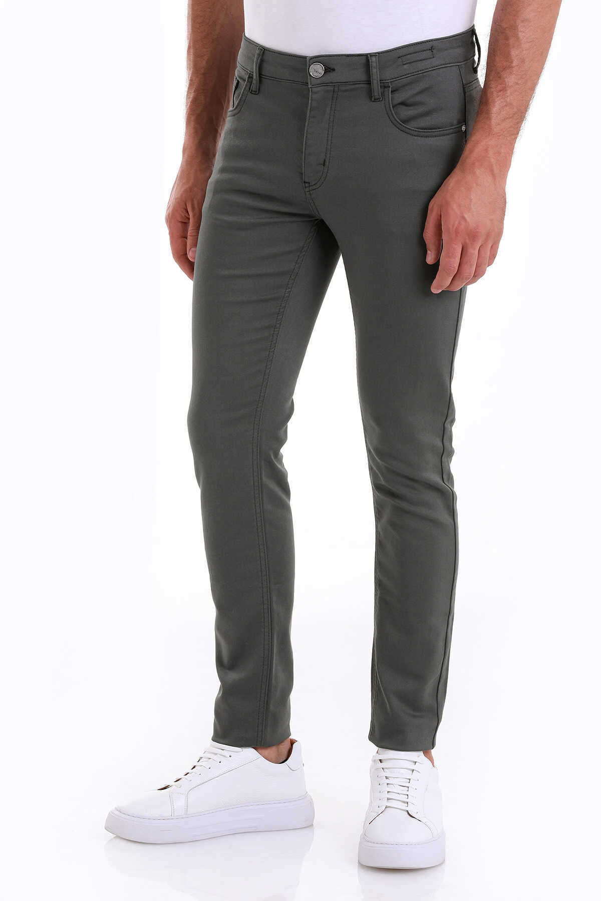 Haki Slim Fit Pamuklu 5 Cep Kanvas Pantolon