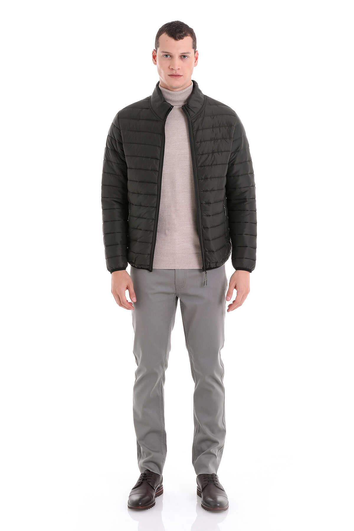 Haki Slim Fit Hakim Yaka Şişme Mont