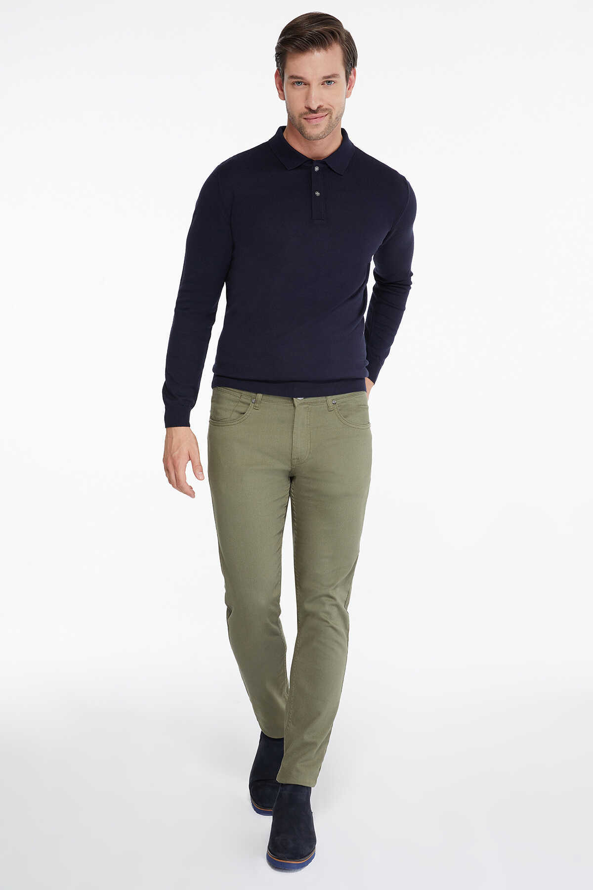 Haki Slim Fit Pamuklu 5 Cep Kot Pantolon