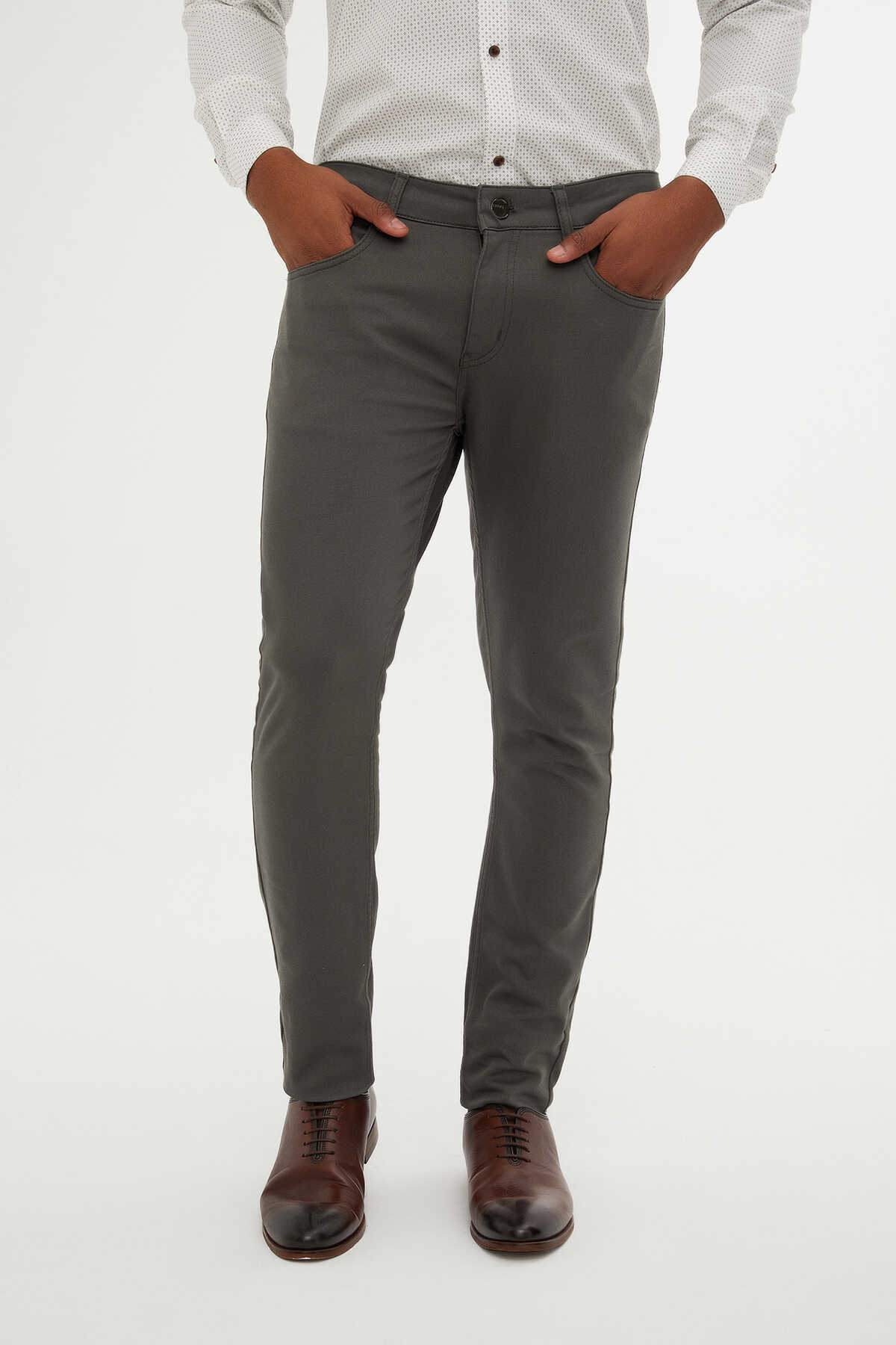 Haki Slim Fit Pamuklu 5 Cep Kanvas Pantolon