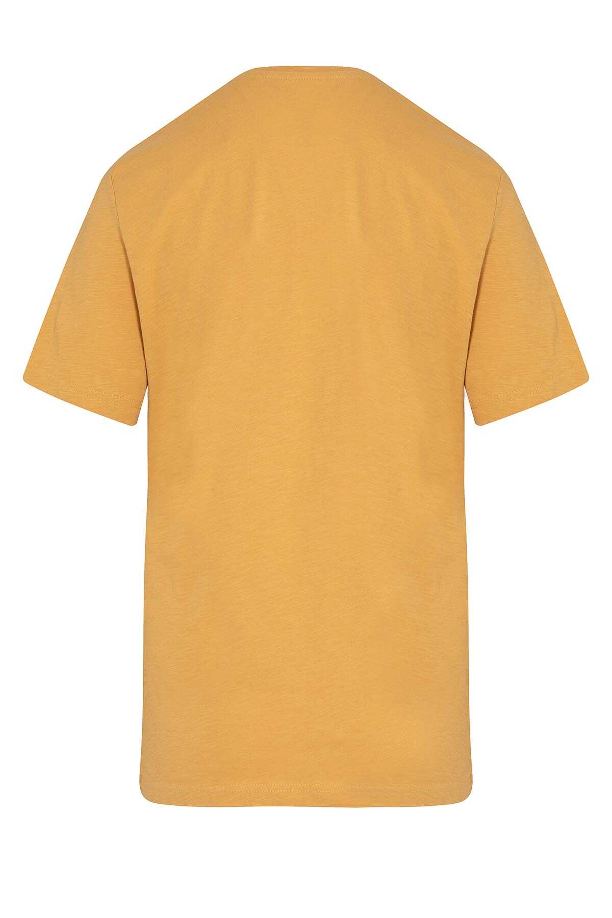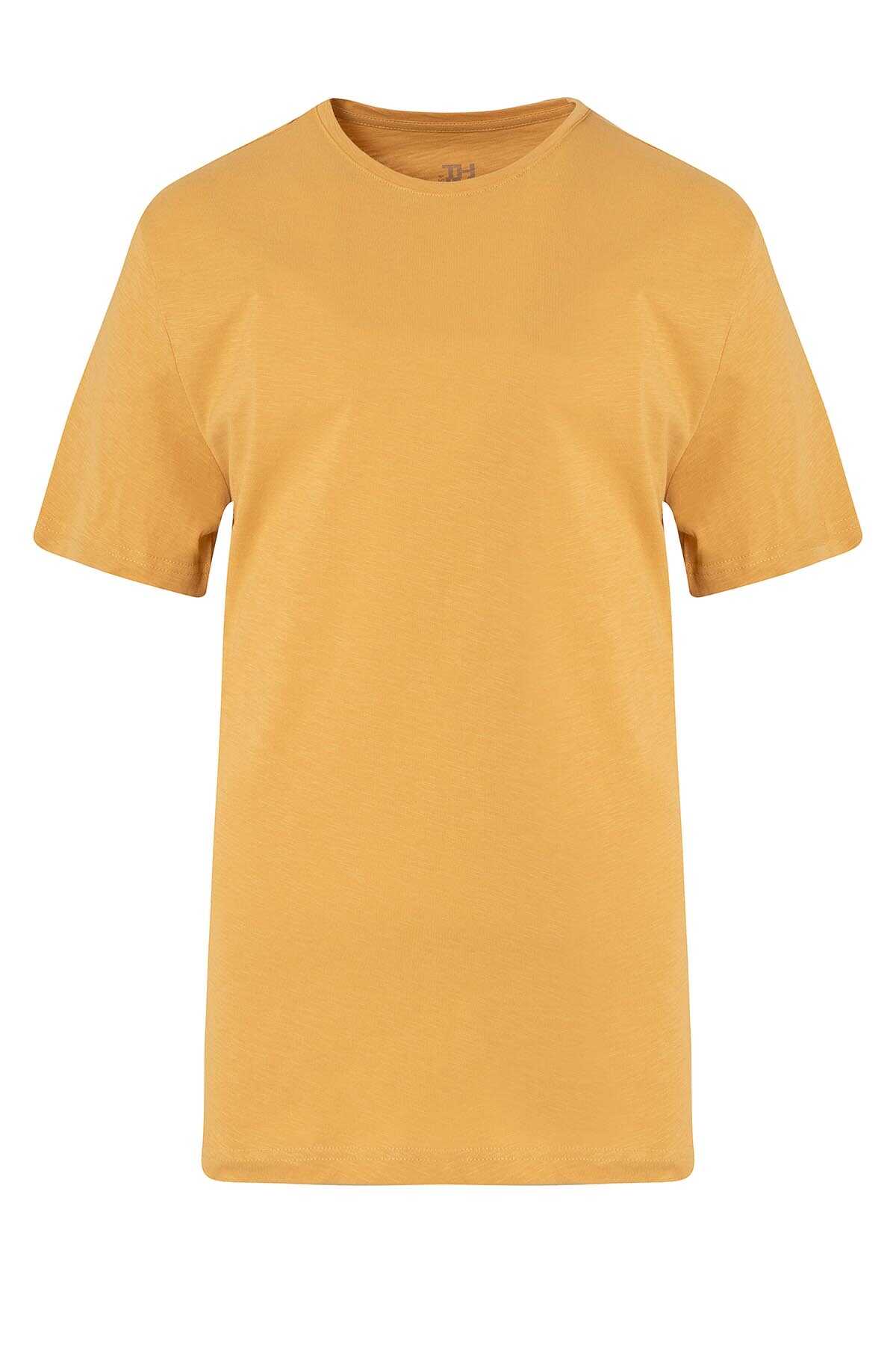 Hardal Bisiklet Yaka Regular Fit Pamuklu Tişört