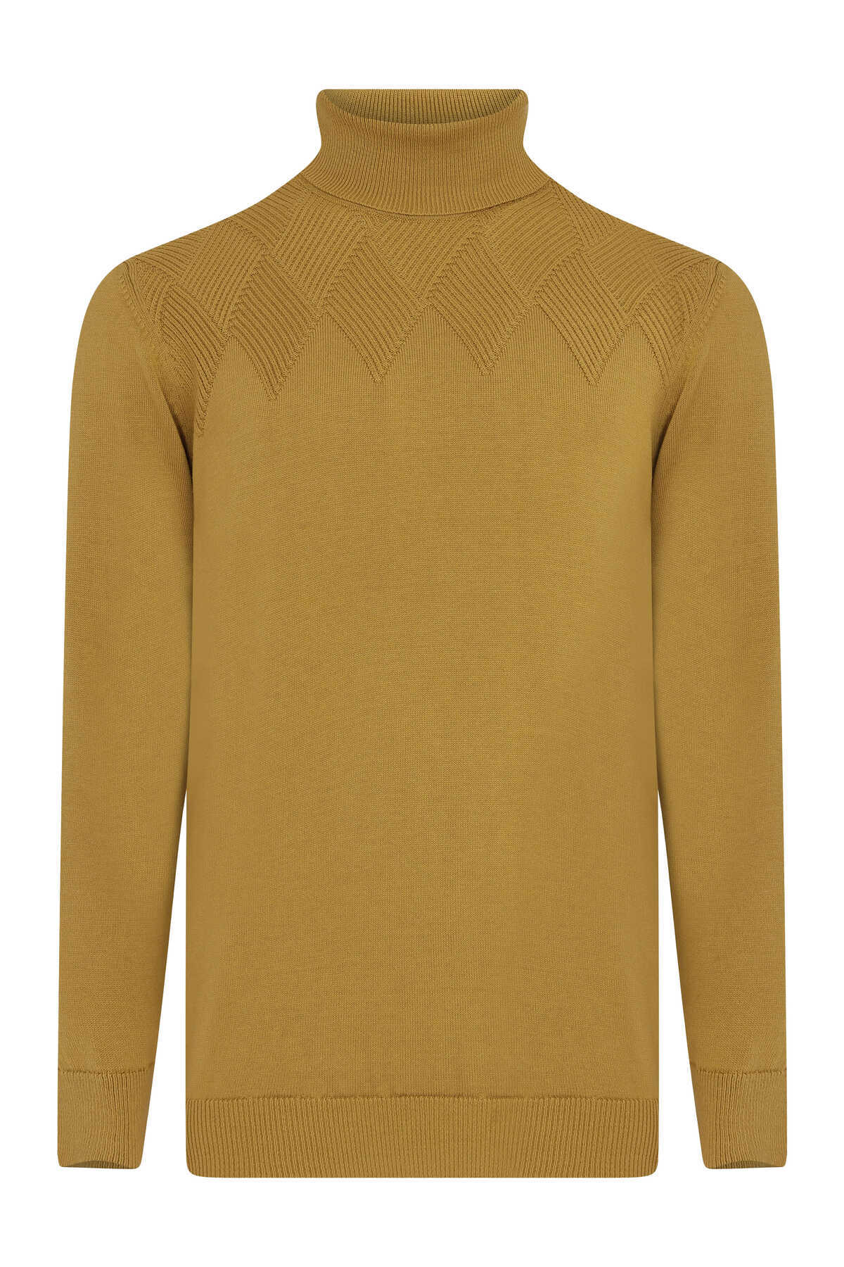 Hardal Regular Fit Desenli Pamuklu Balıkçı Yaka Triko Kazak