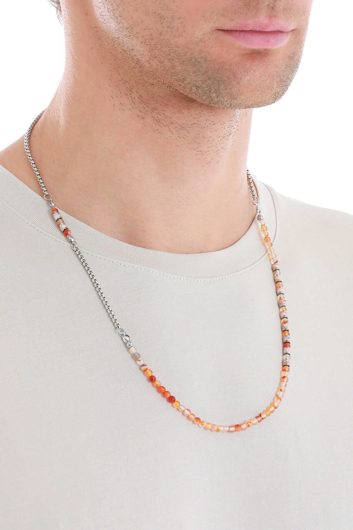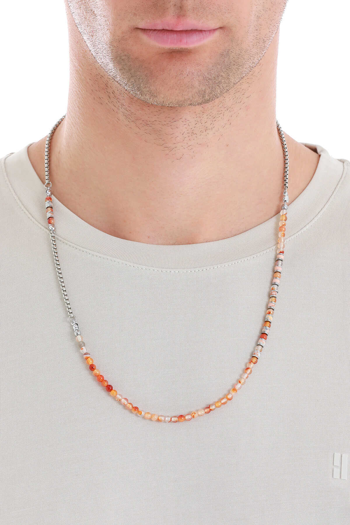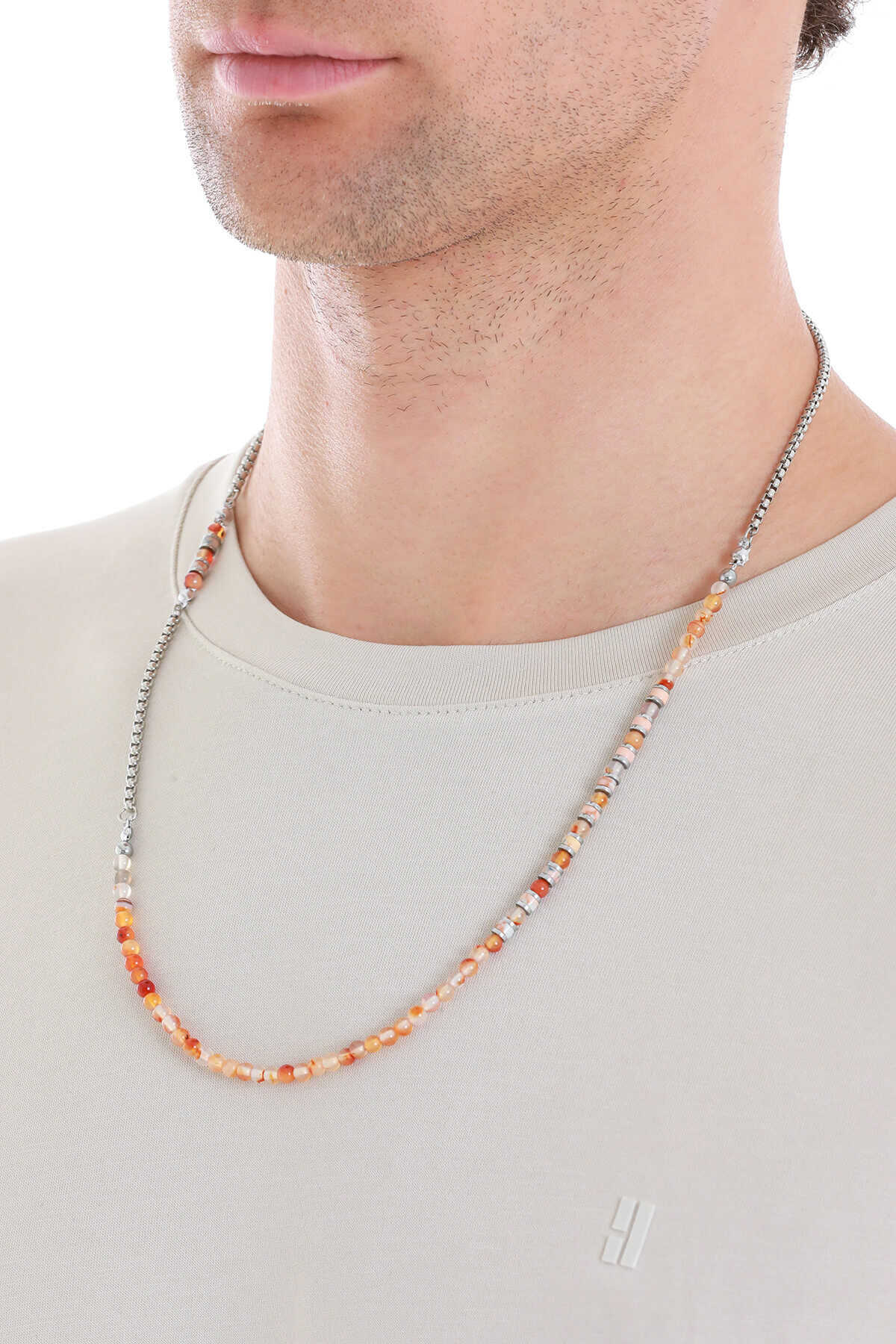 Doğal Taşlı Çelik Erkek Kolye - 3