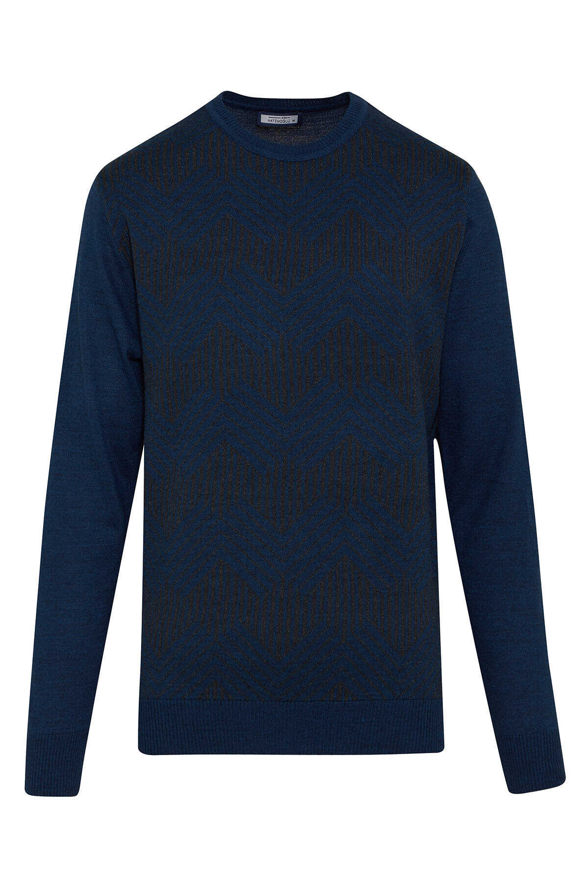indigo Regular Fit Desenli Bisiklet Yaka Yünlü Kazak