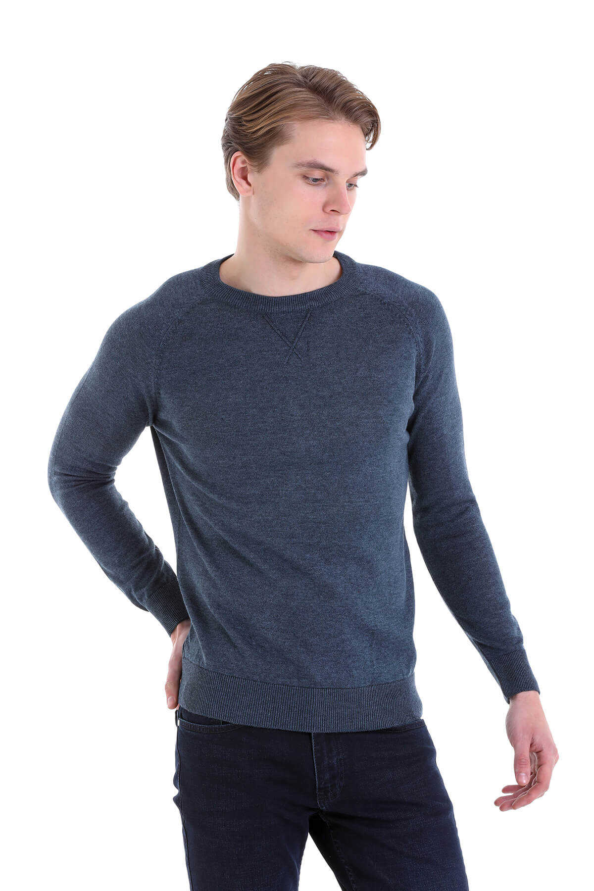 indigo Slim Fit Desenli Pamuklu Bisiklet Yaka Triko Kazak