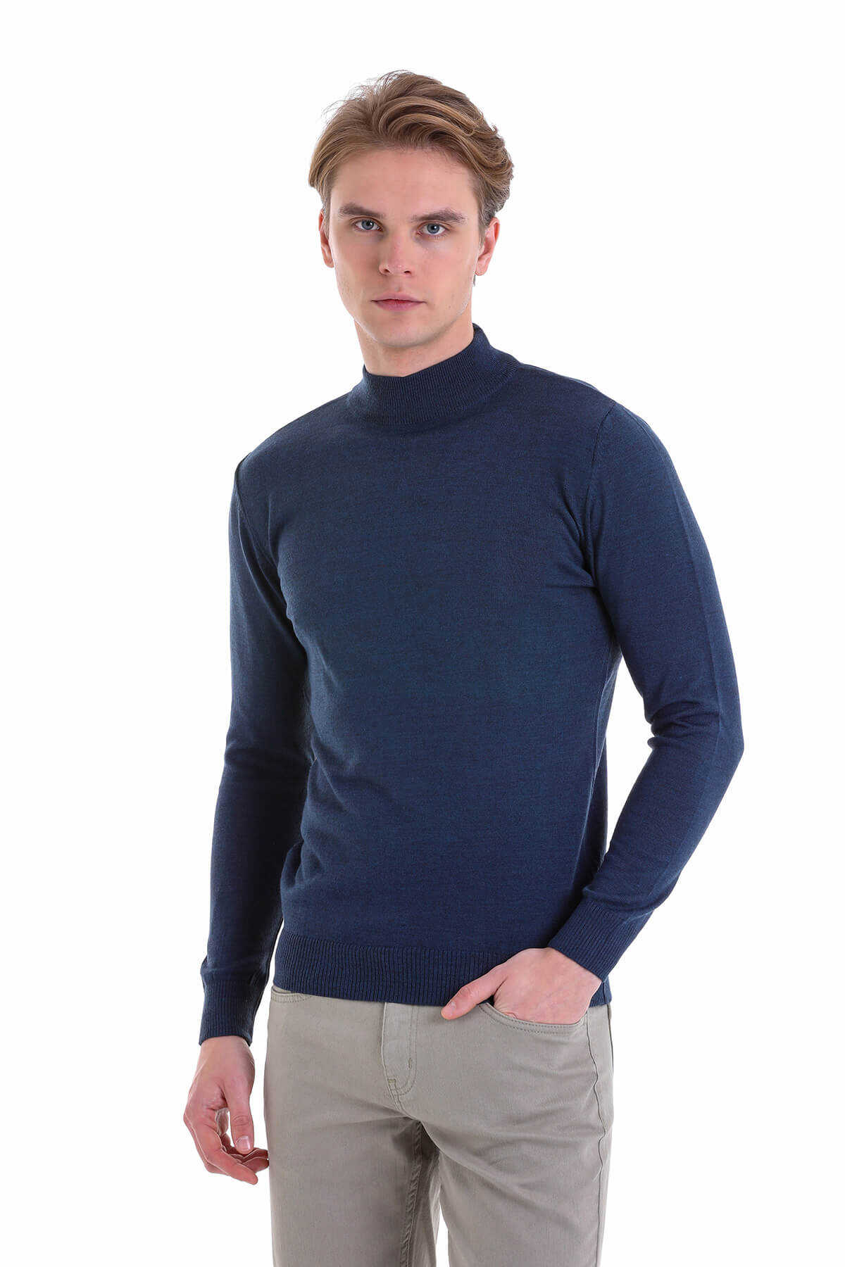 Mavi Comfort Fit Yarım Balıkçı Yaka Yünlü Kazak