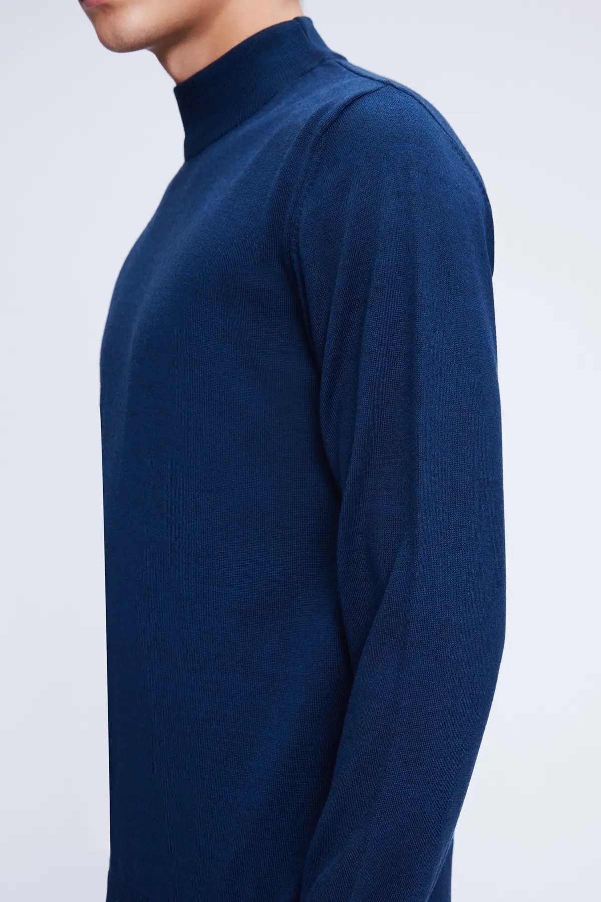 Mavi Regular Fit Düz Yarım Balıkçı Yaka Yünlü Triko Kazak