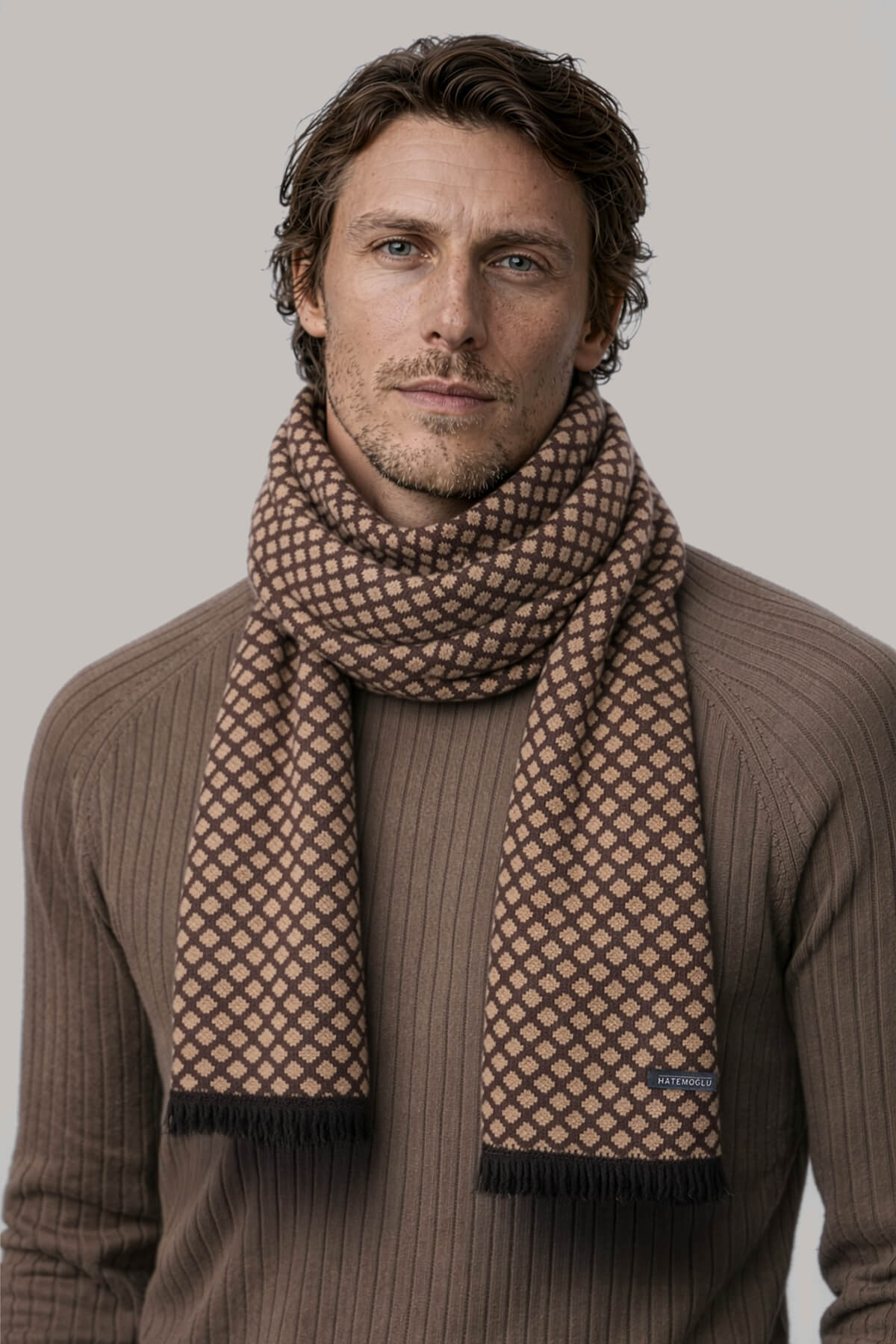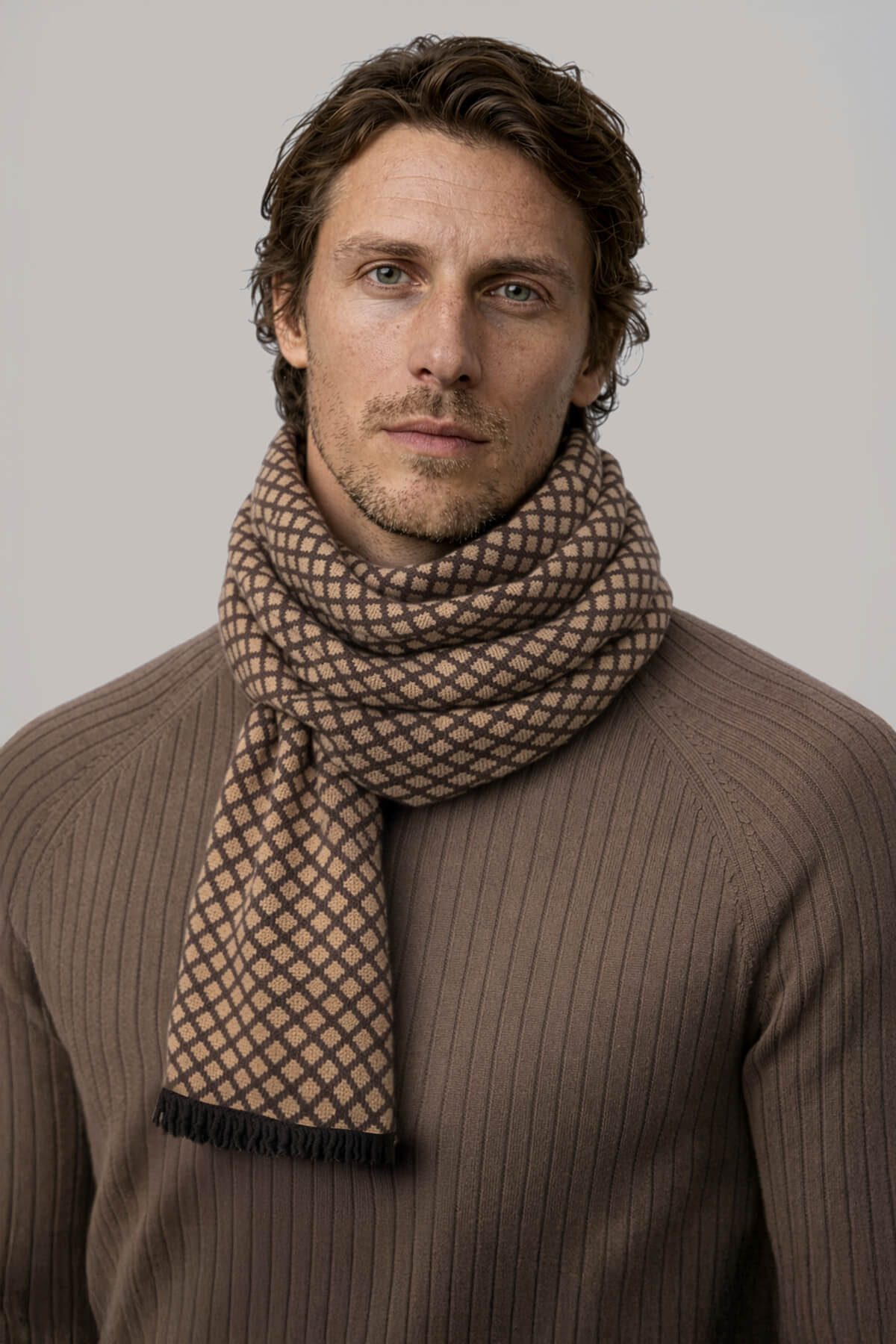 Kahverengi - Camel Desenli Atkı
