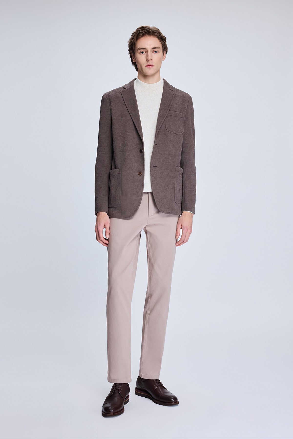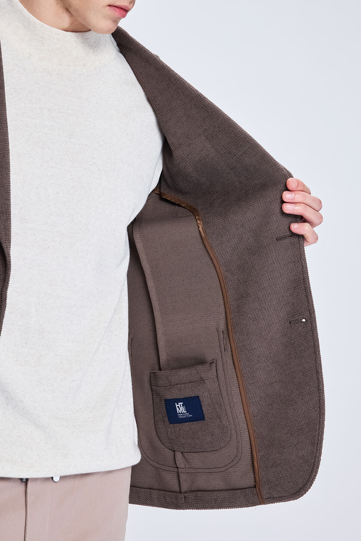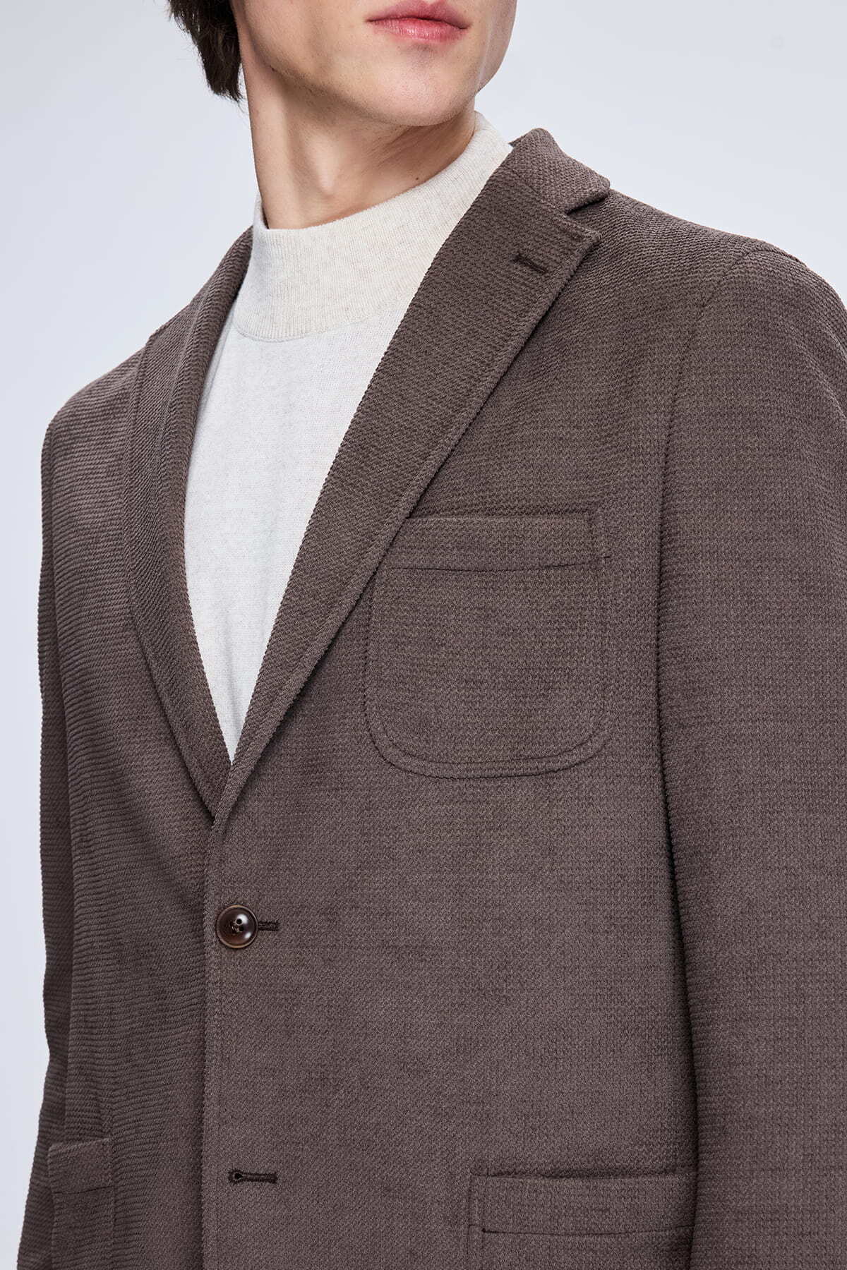 Kahverengi Comfort Fit Desenli Mono Yaka Klasik Ceket