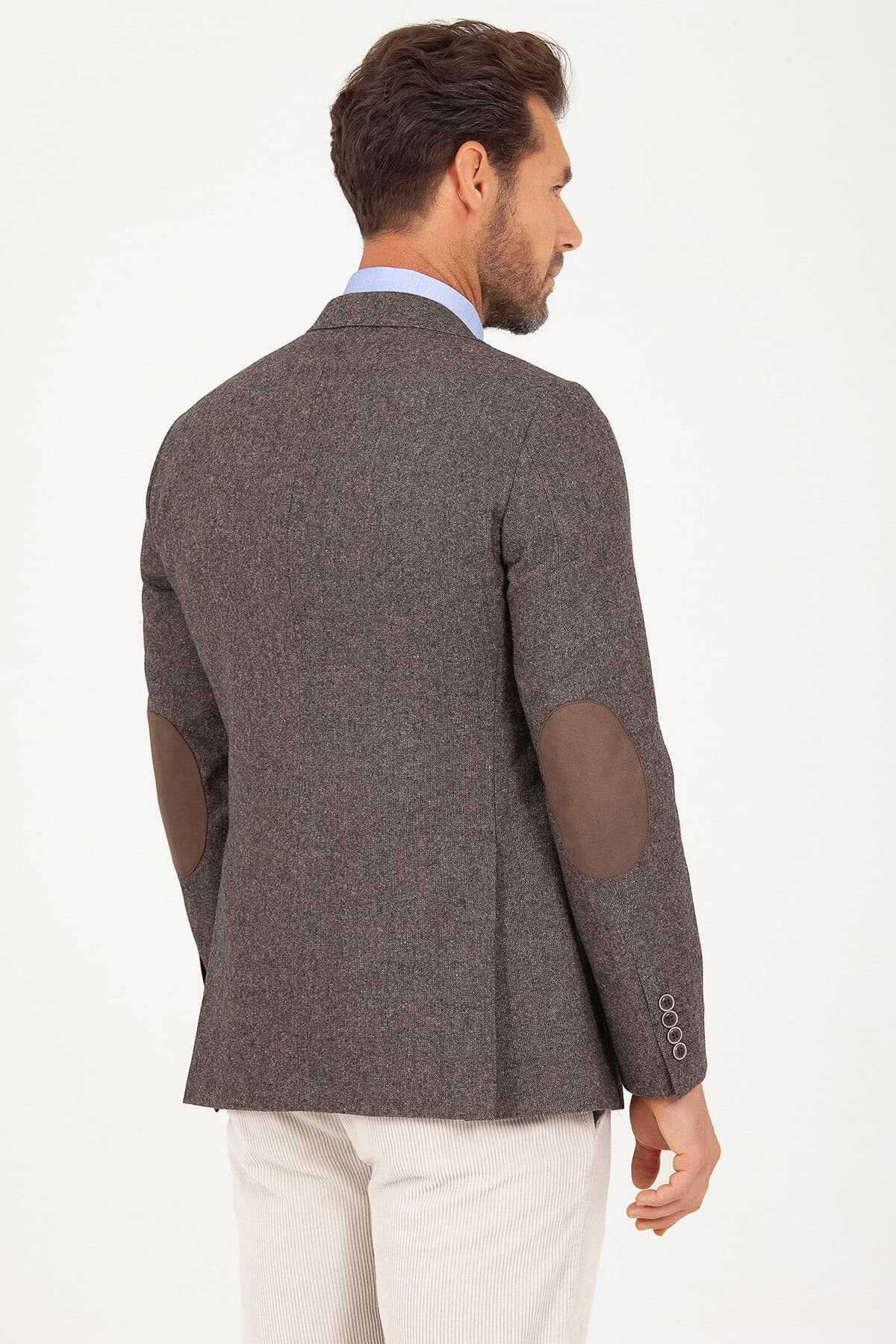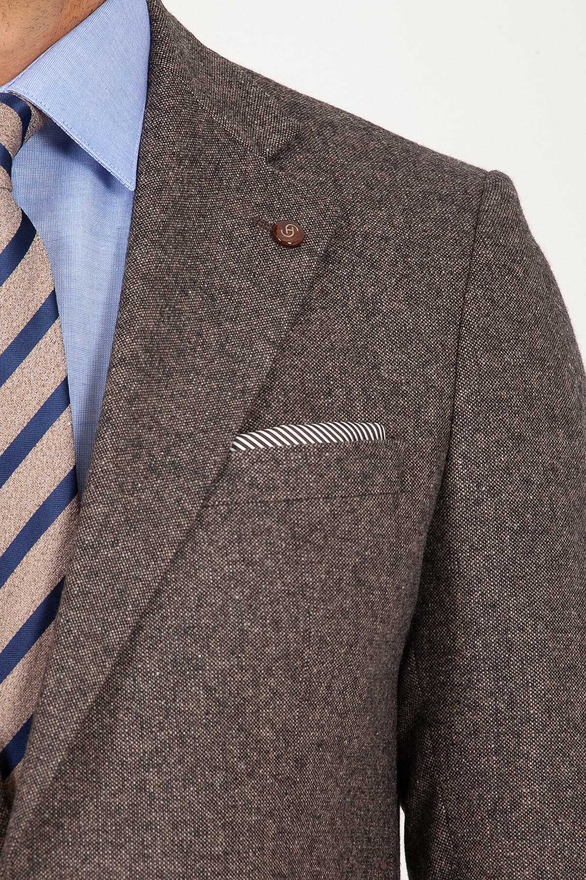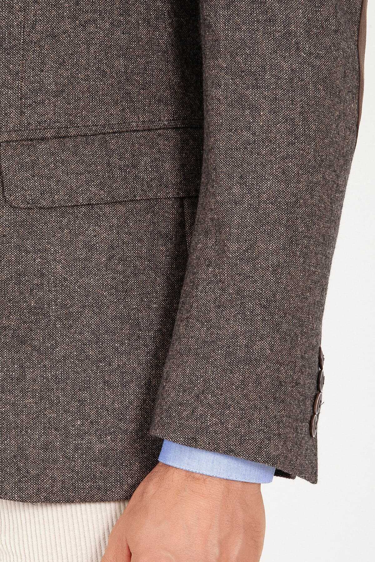 Kahverengi Slim Fit Yünlü Ceket