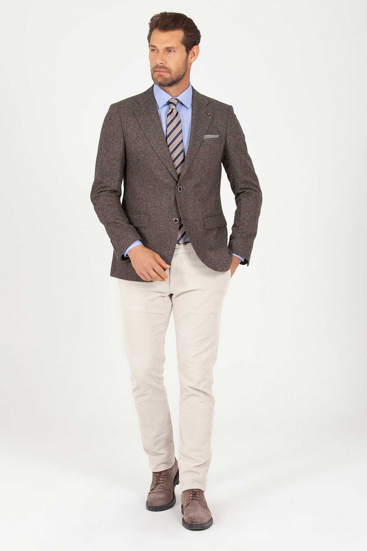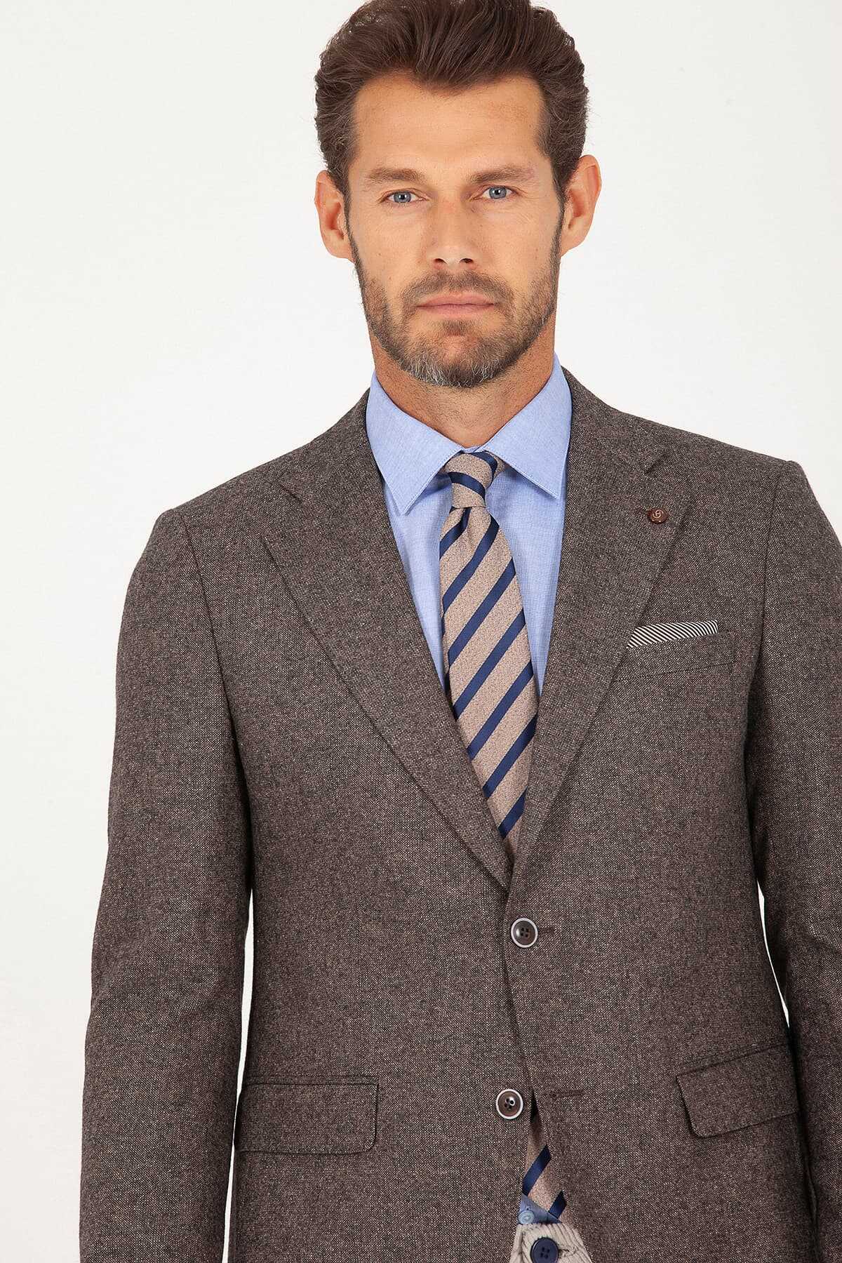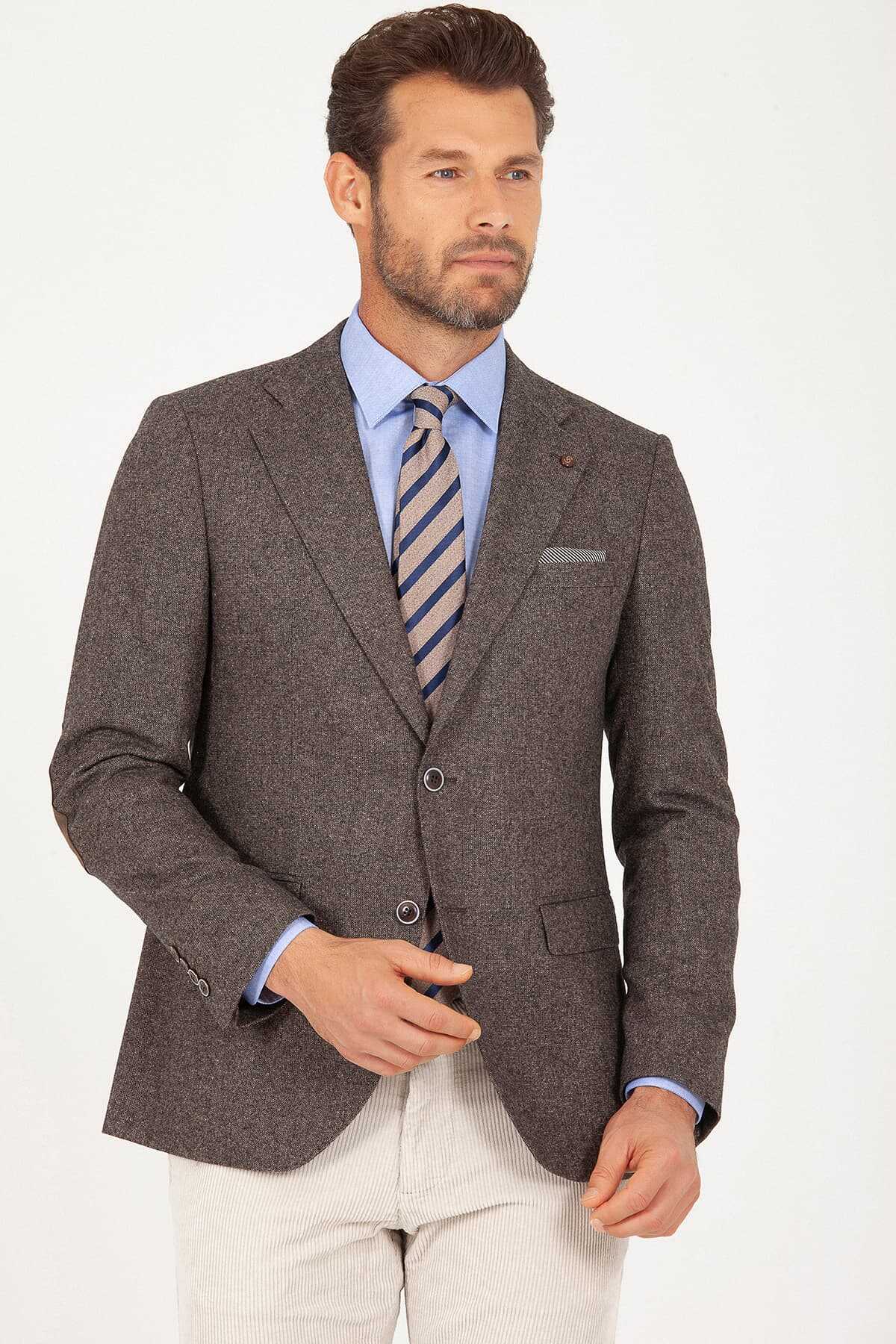 Kahverengi Slim Fit Yünlü Ceket