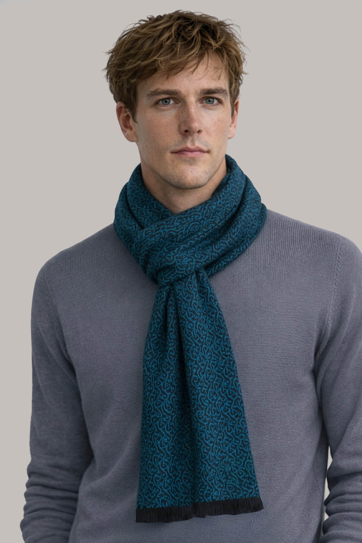 Mavi Desenli Atkı - 4