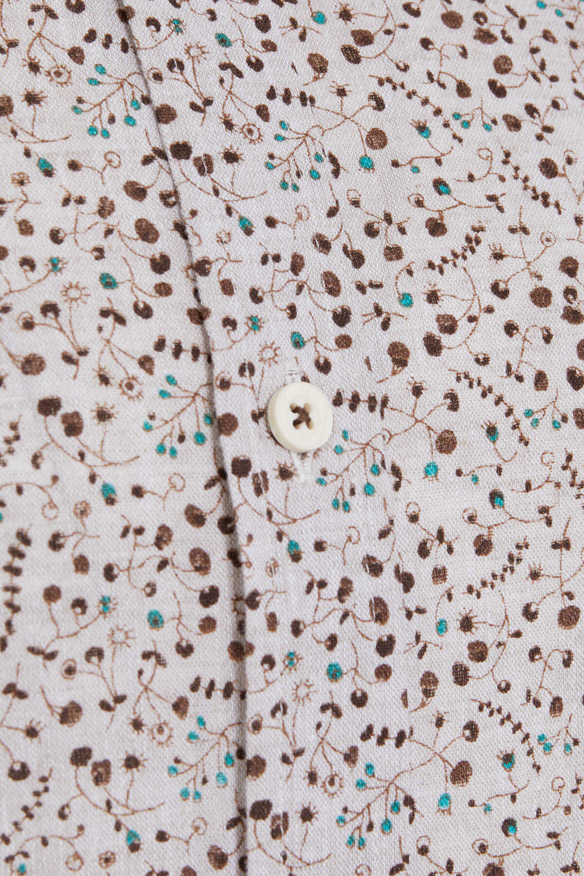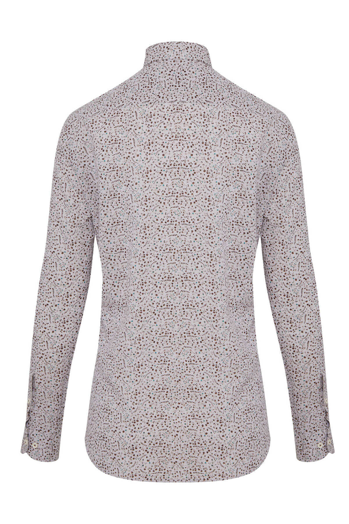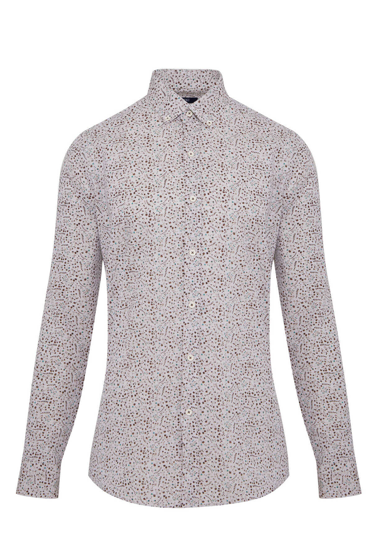Kahverengi Slim Fit Baskılı Düğmeli Yaka Uzun Kollu Casual Keten Gömlek
