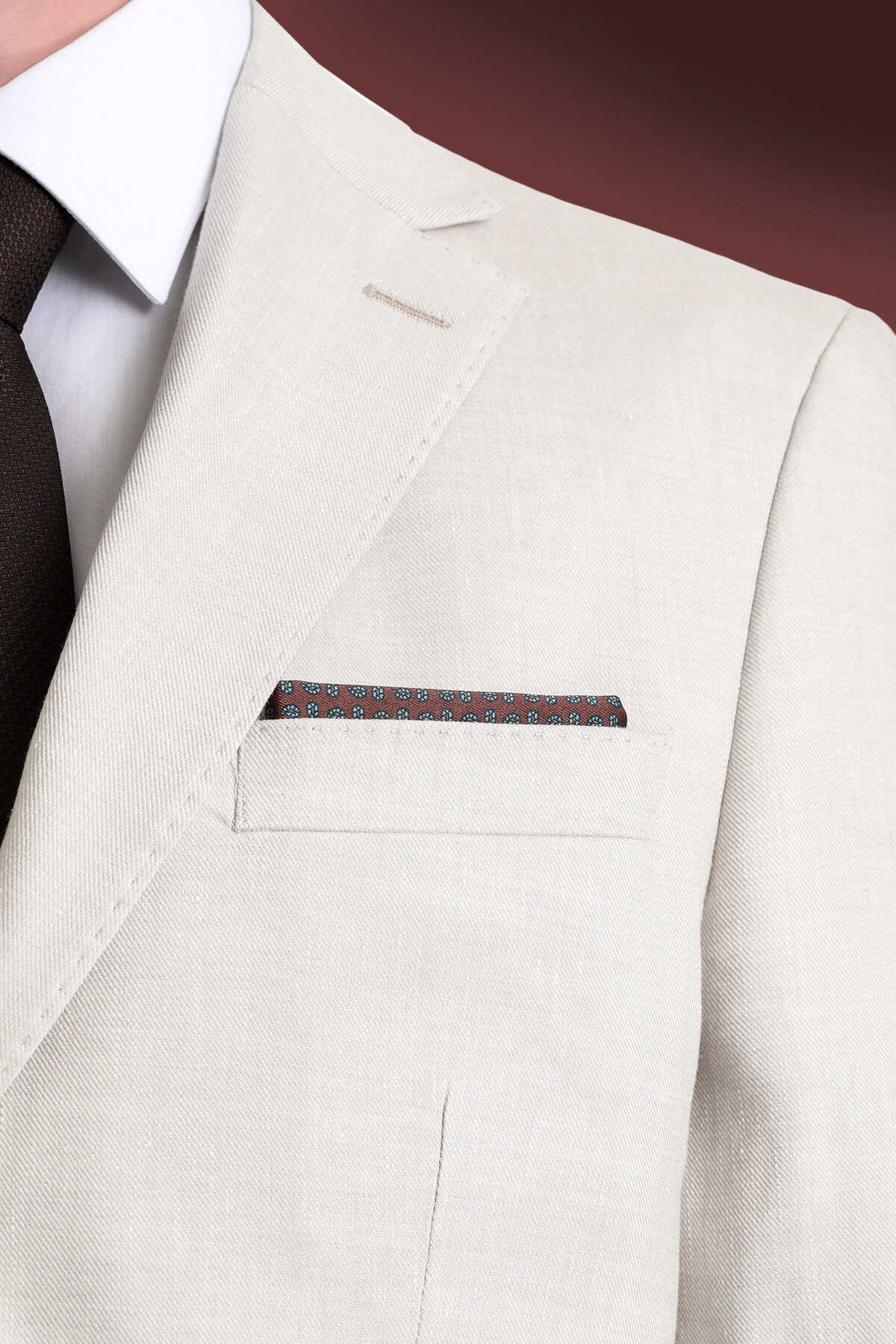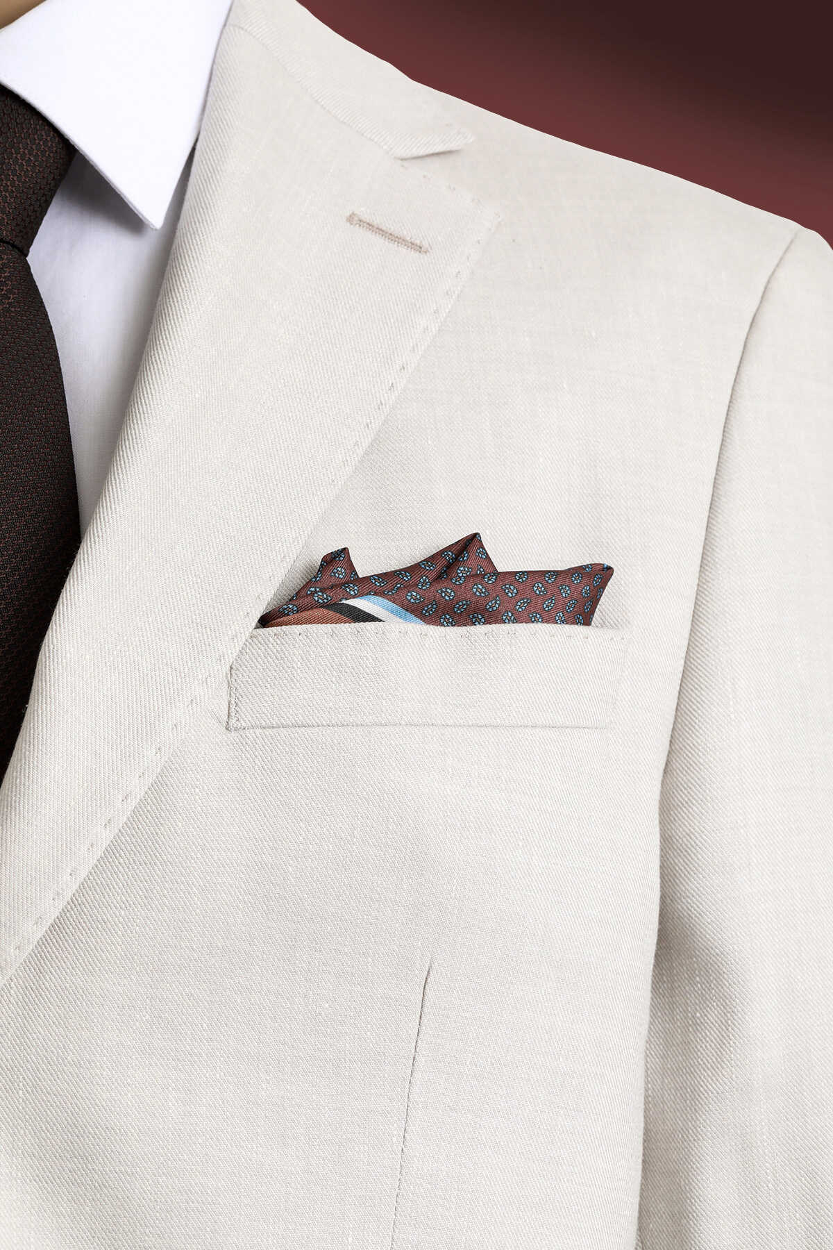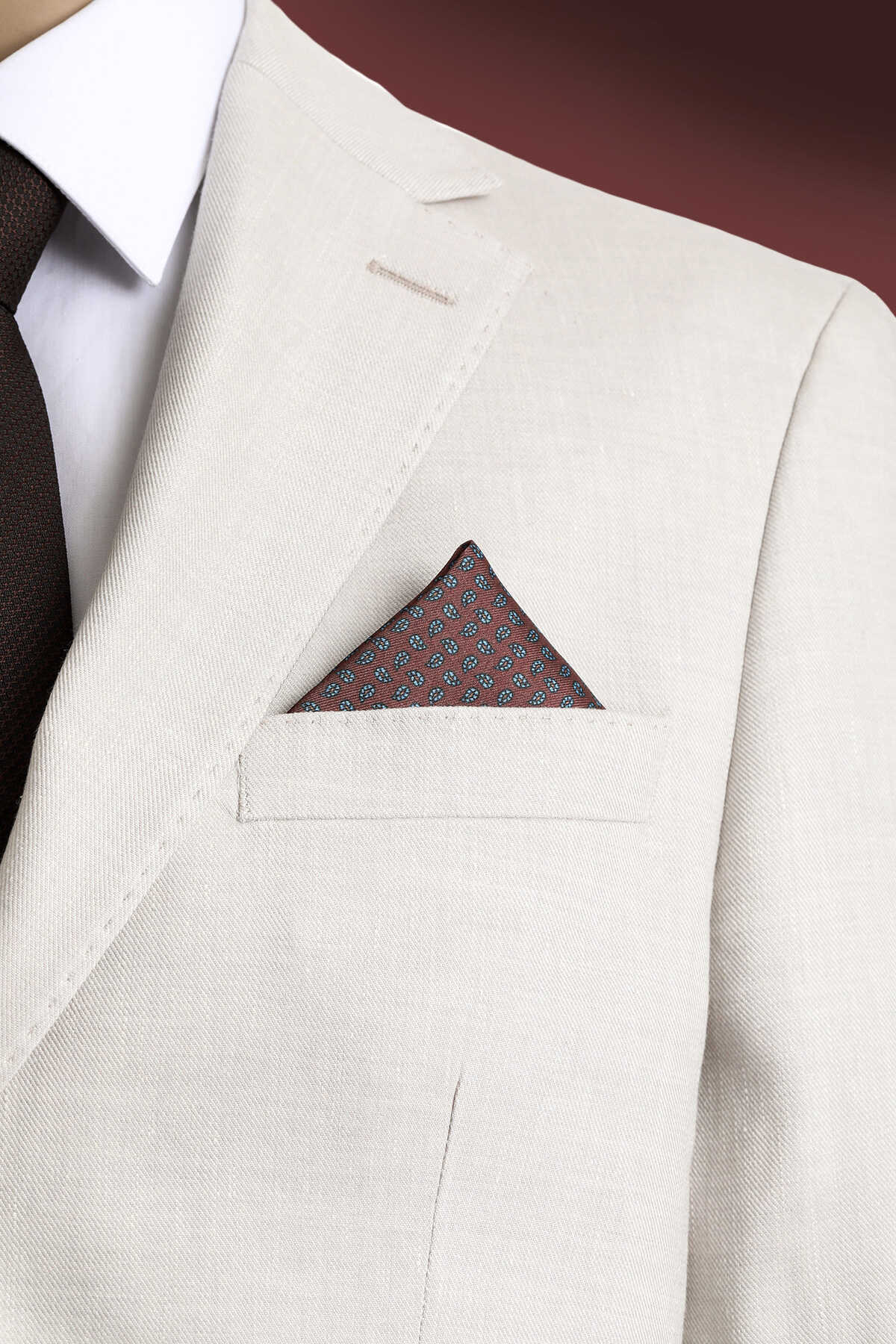 Kahverengi Desenli Klasik Saten Cep Mendili