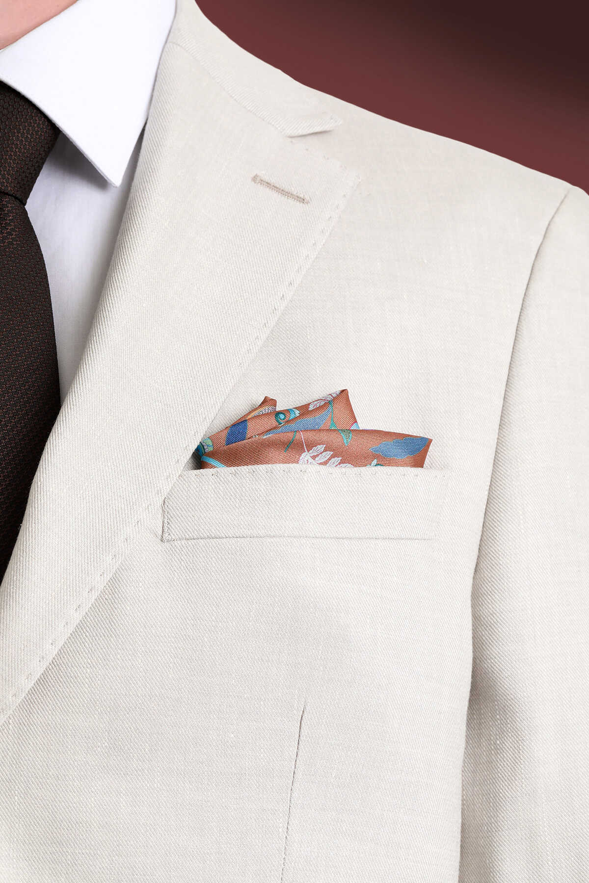 Kahverengi Desenli Klasik Saten Cep Mendili