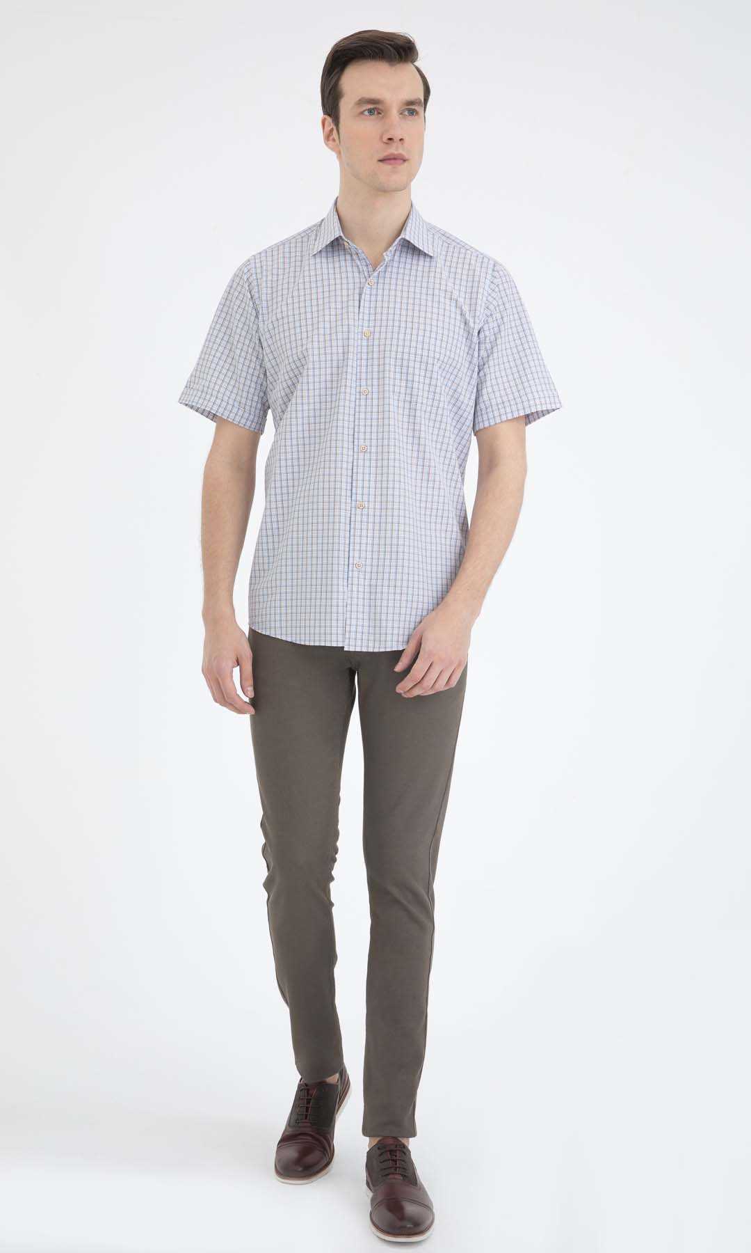 Kahverengi Kareli Klasik Kısa Kol Gömlek