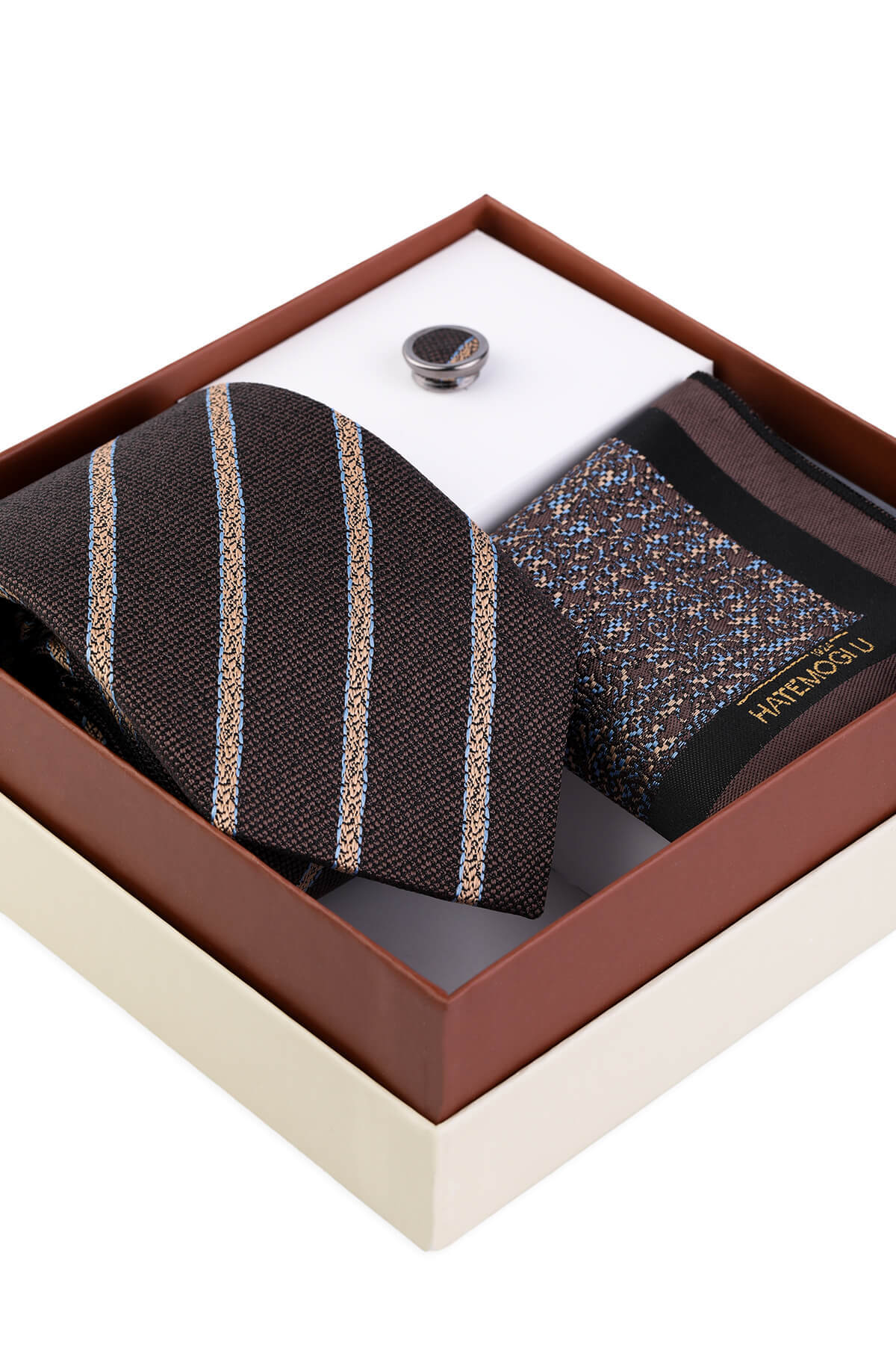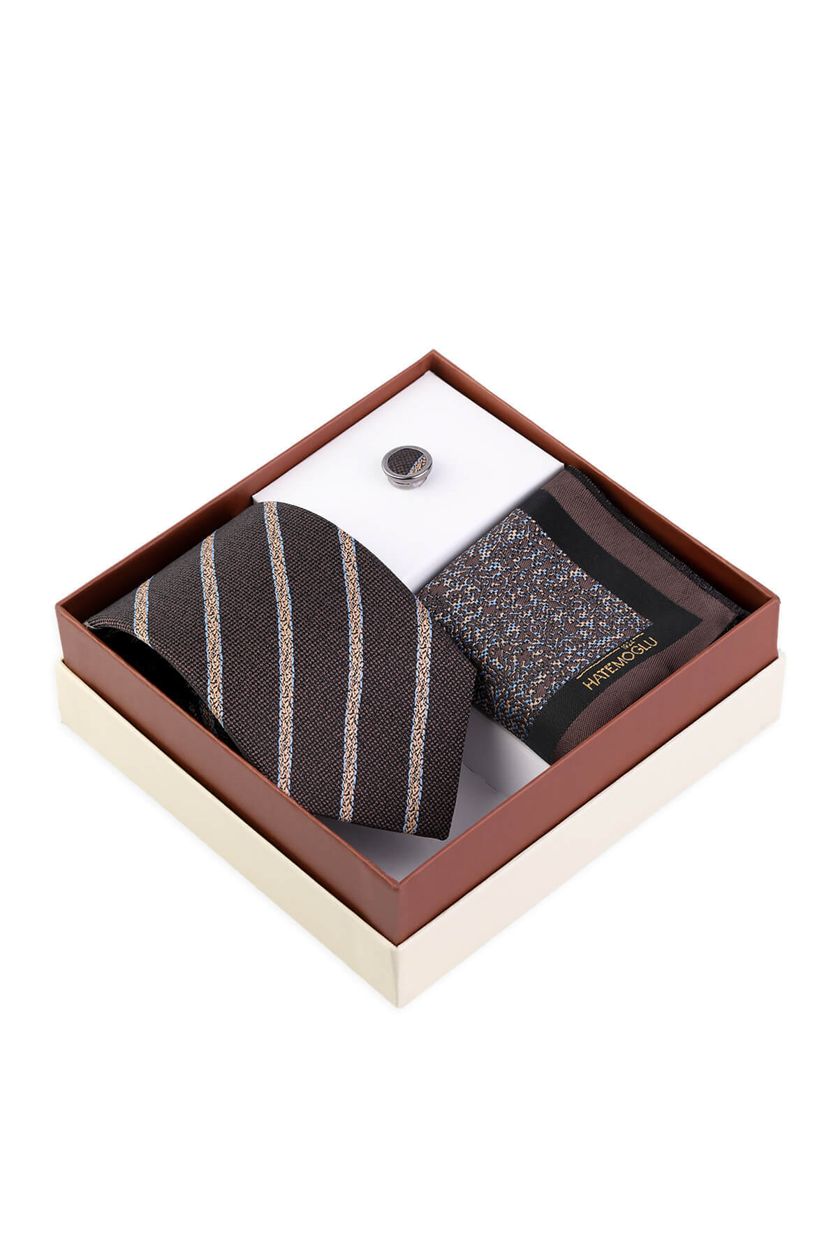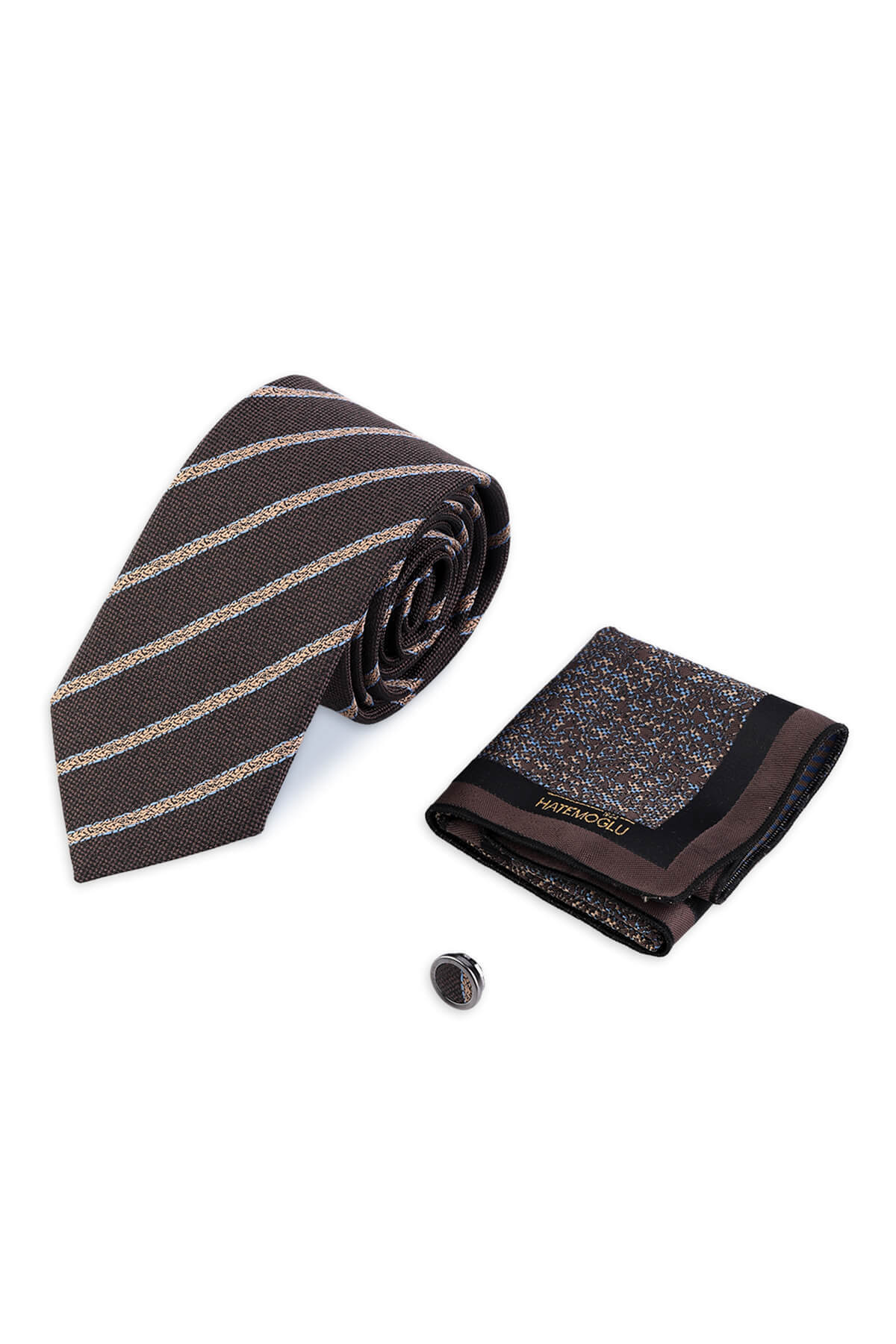 Kahverengi Kravat Mendil ve Yaka Rozeti 3'lü Set