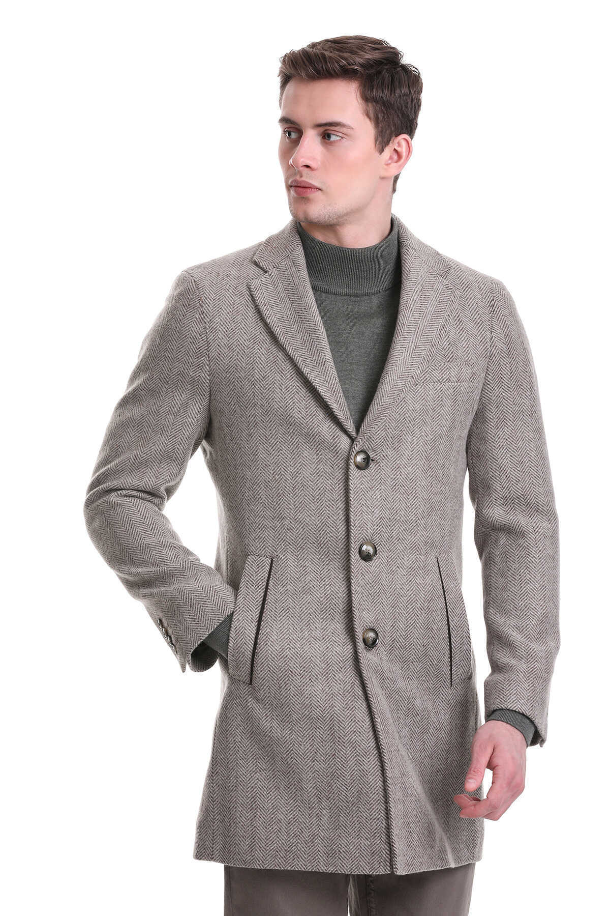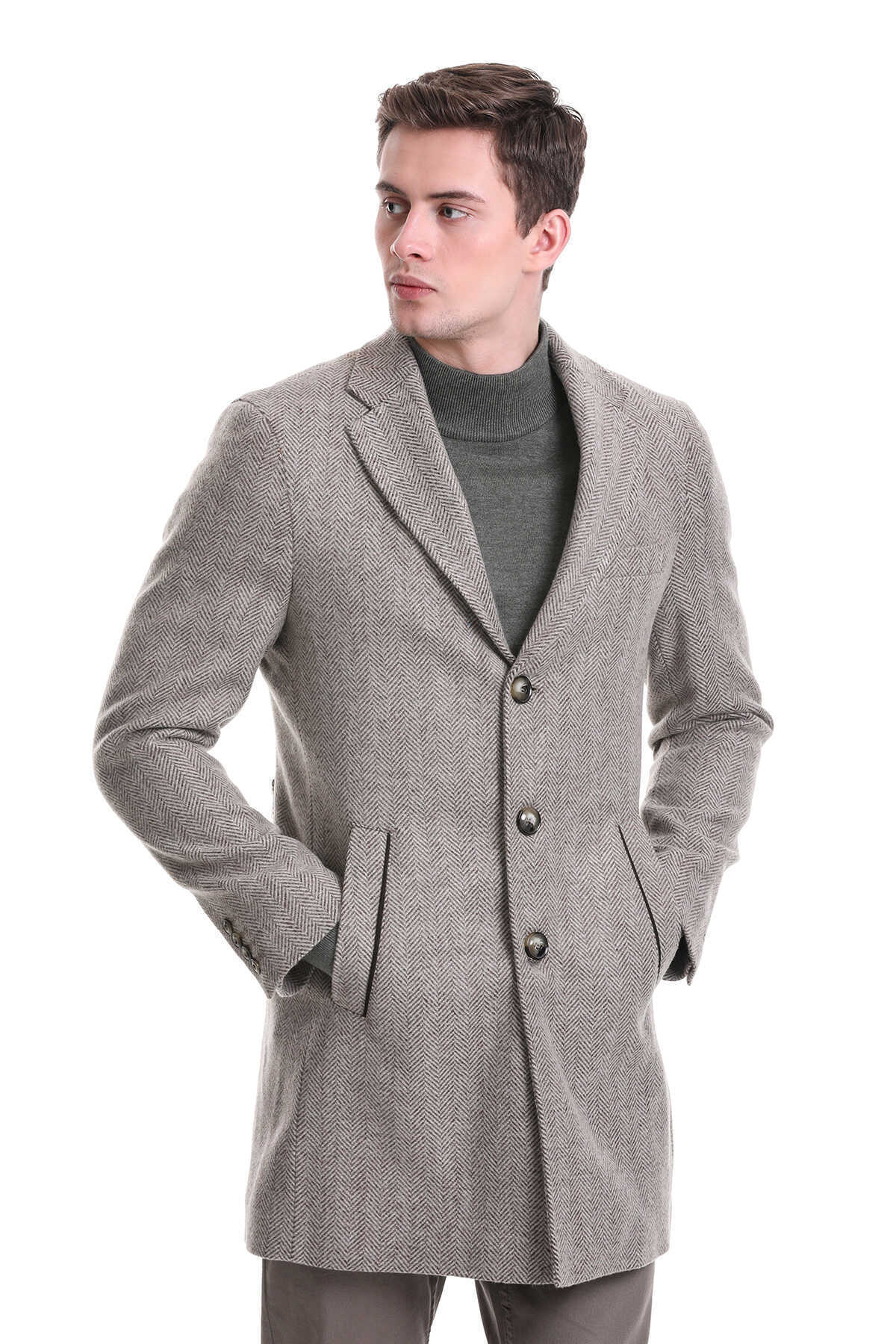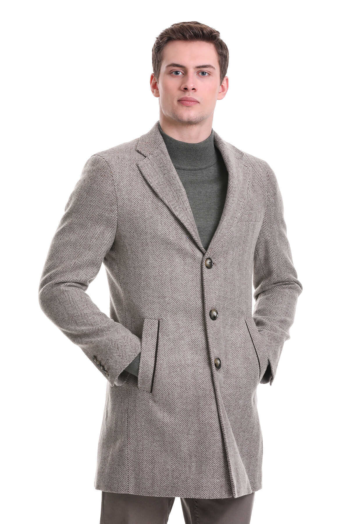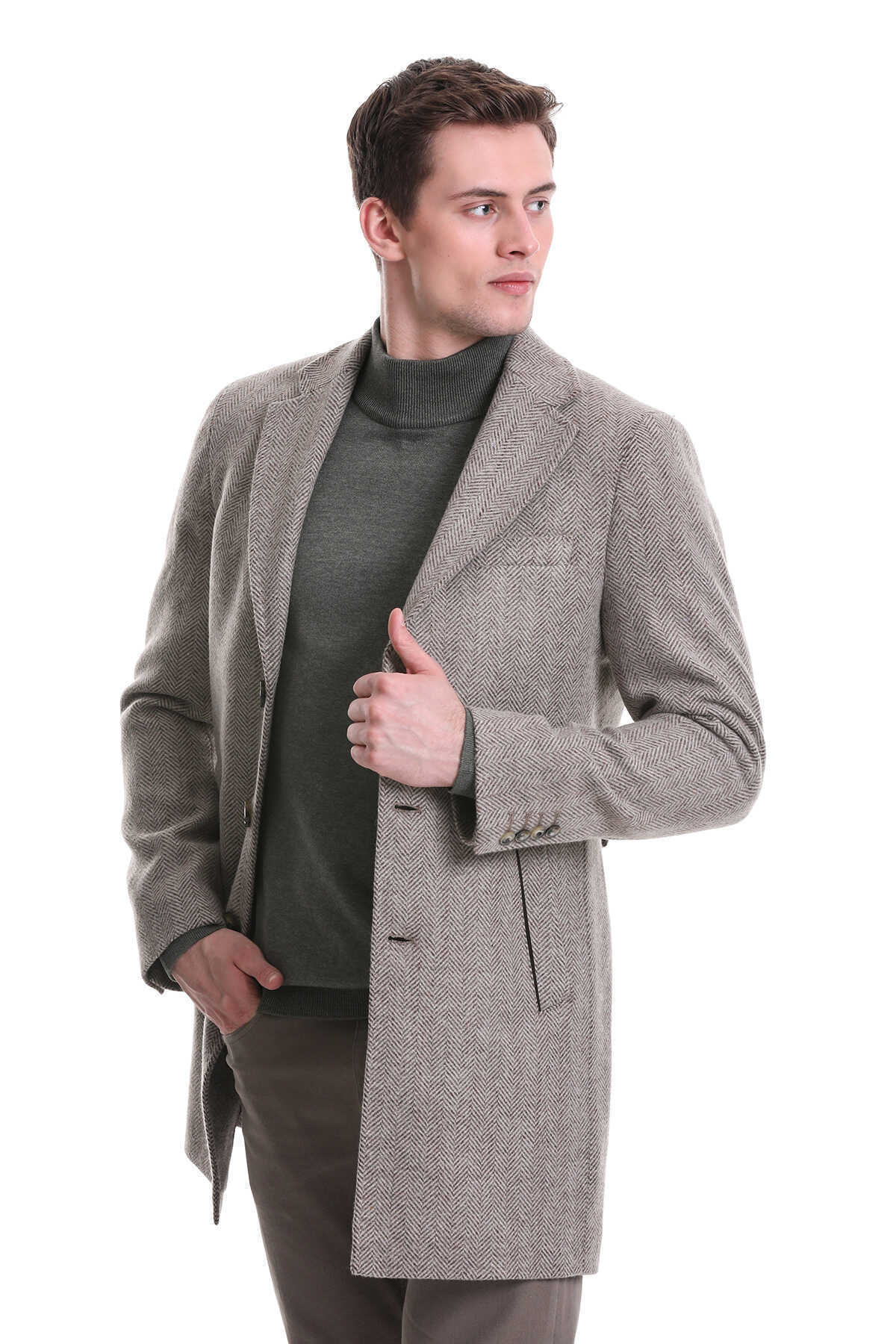 Kahverengi Regular Fit Balıksırtı Ceket Yaka Yünlü Kaşe Palto