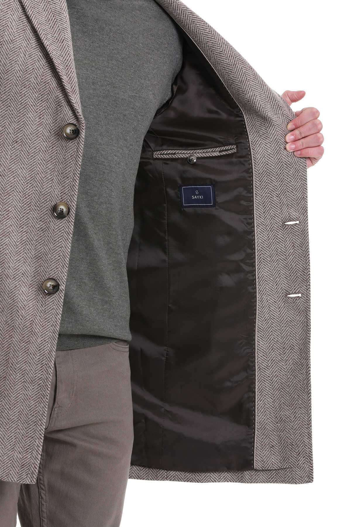 Kahverengi Regular Fit Balıksırtı Ceket Yaka Yünlü Kaşe Palto - 8