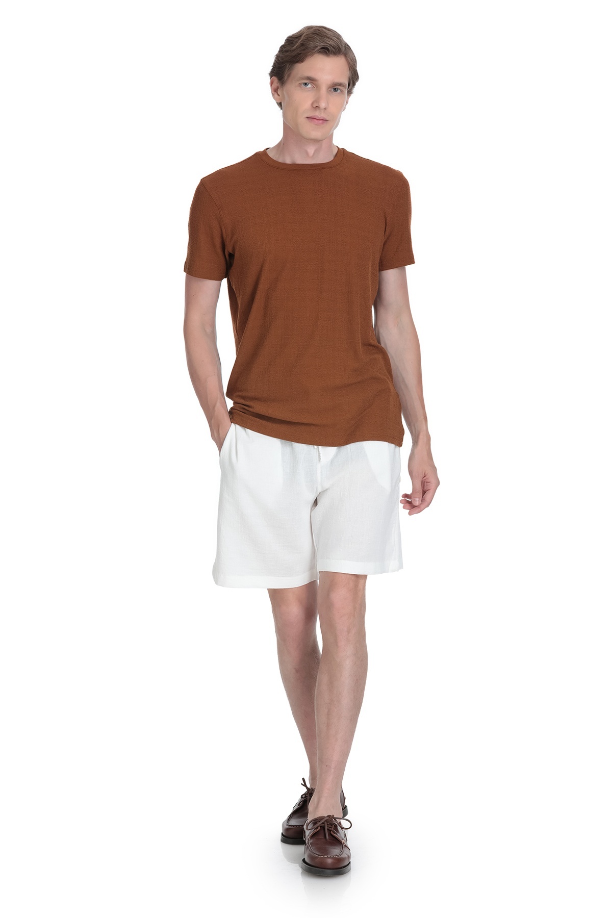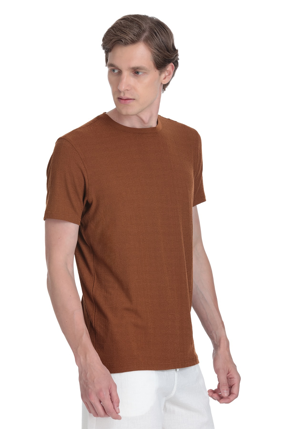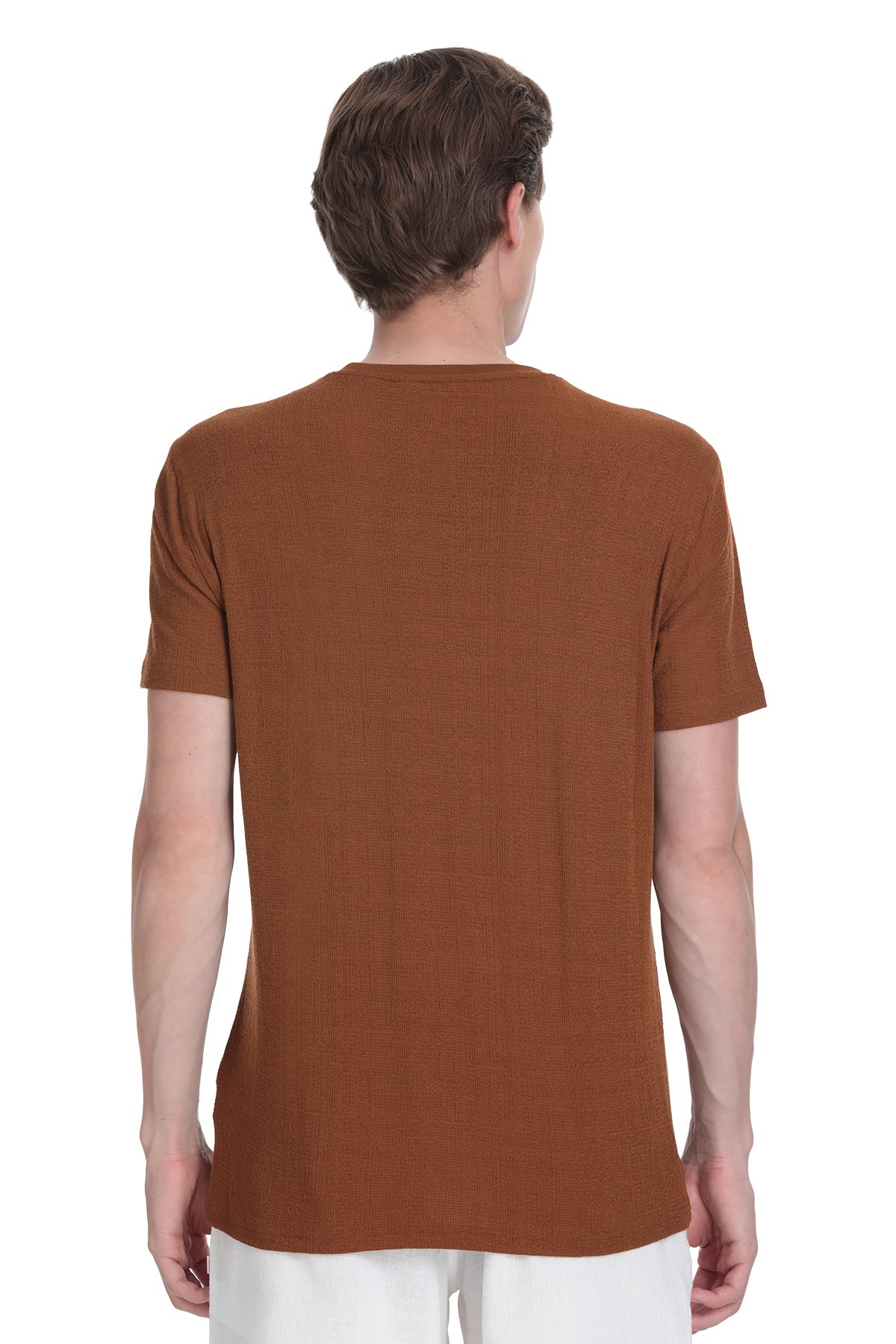 Kahverengi Regular Fit Bisiklet Yaka Tişört - 5