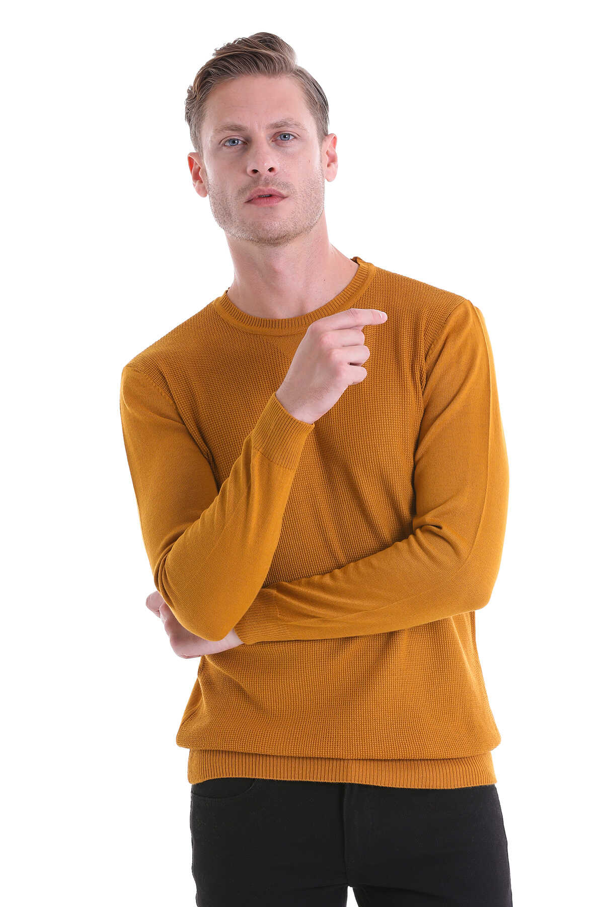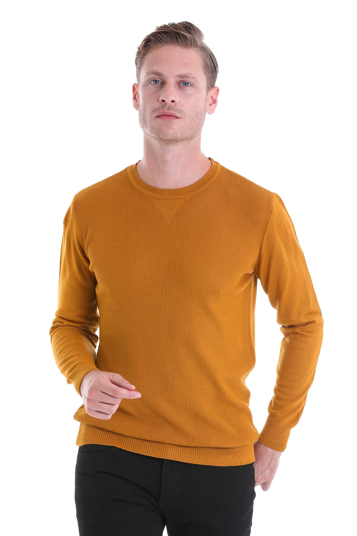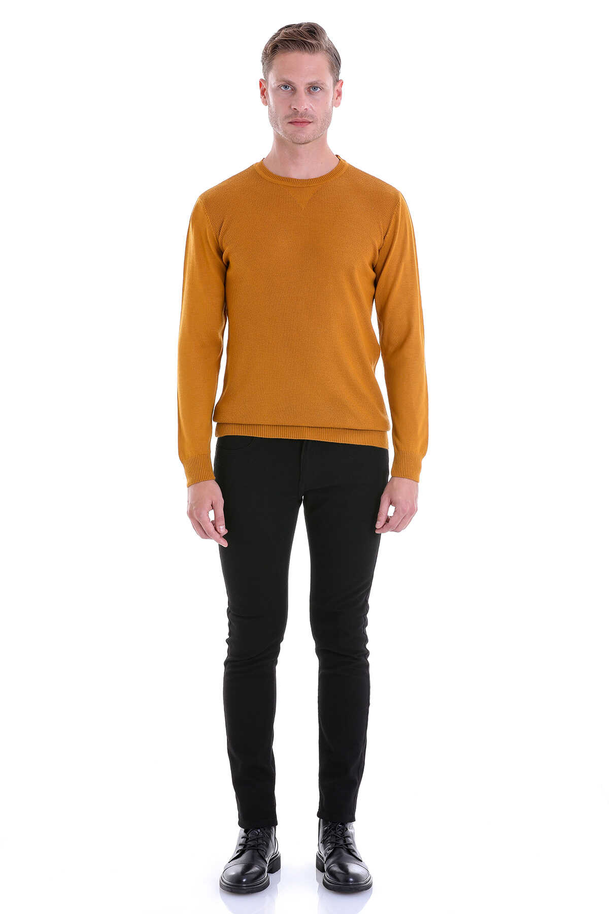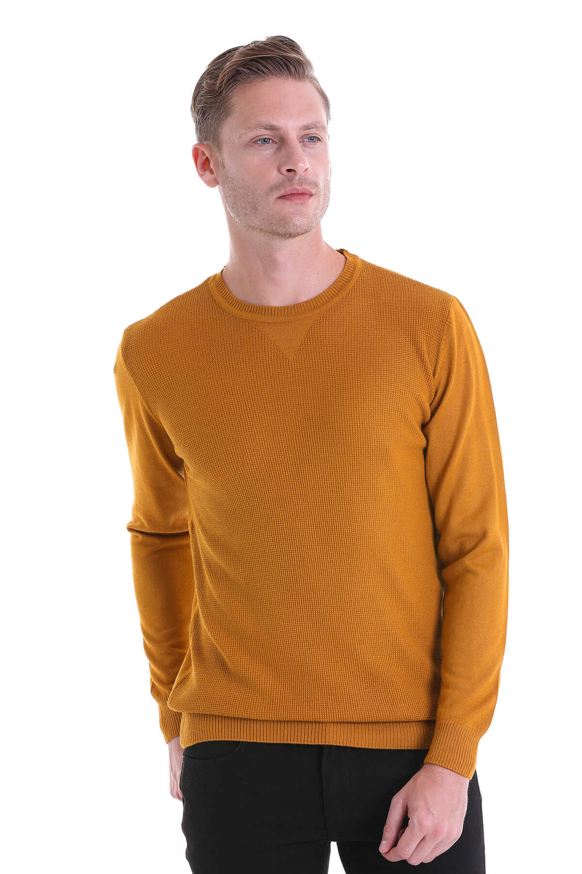 SAFRAN Comfort Fit Pirinç Örgü Desenli Bisiklet Yaka Yünlü Kazak