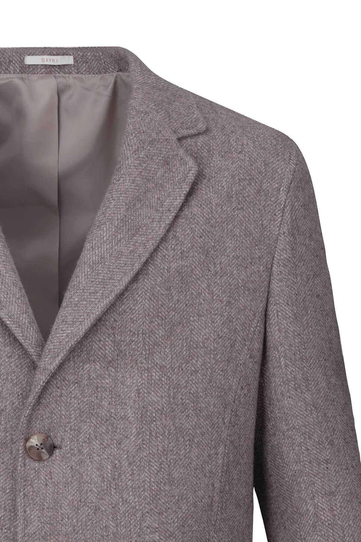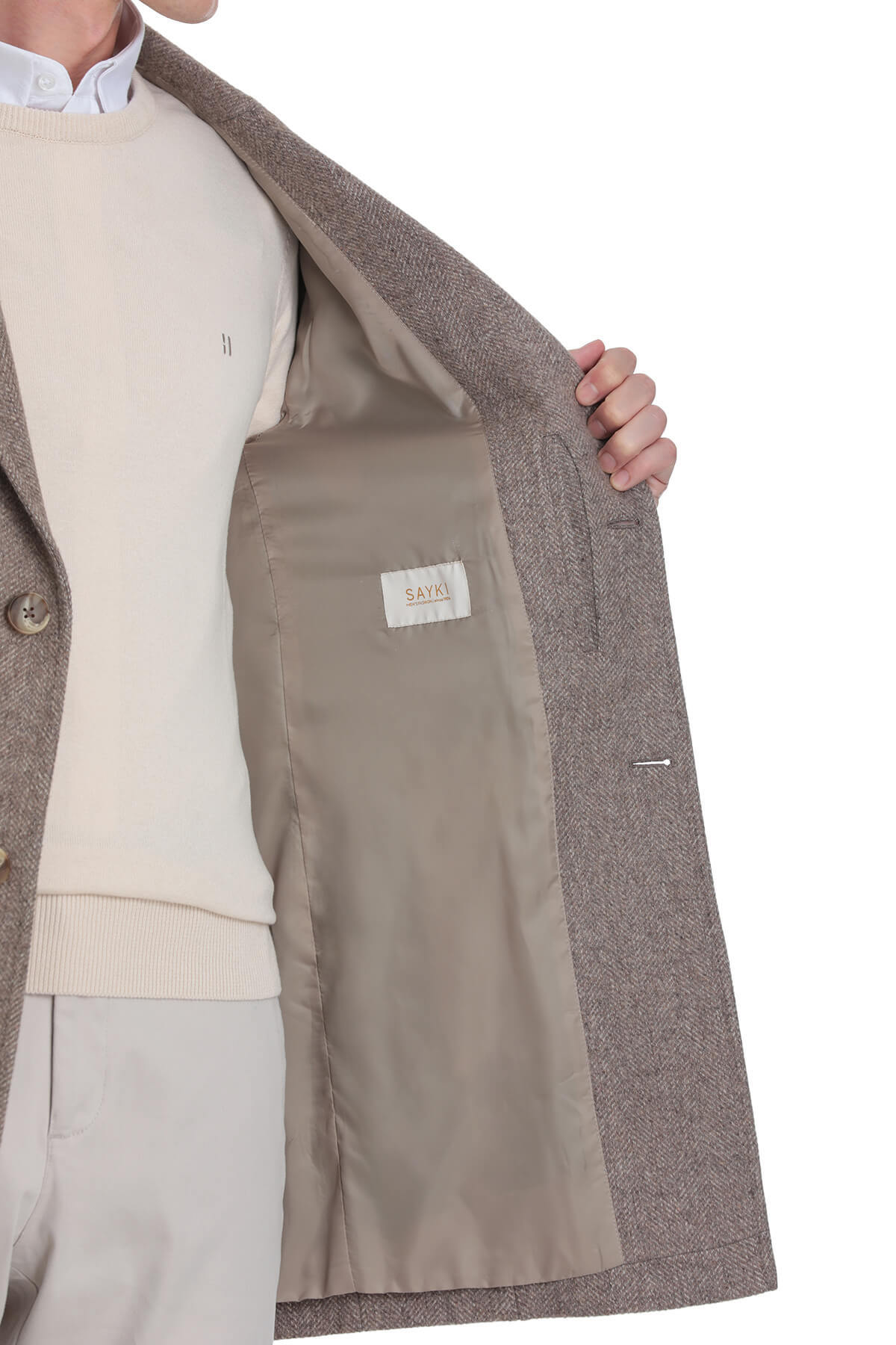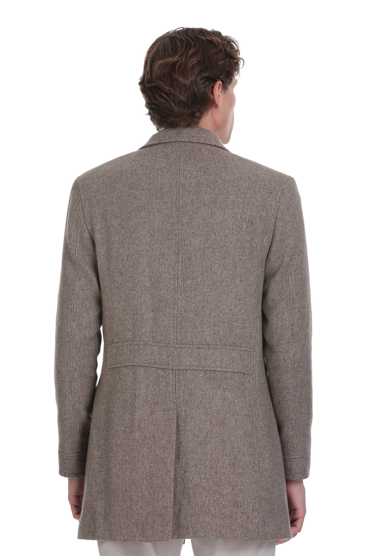 Kahverengi Slim Fit Ceket Yaka Yünlü Kaşe Palto - 10