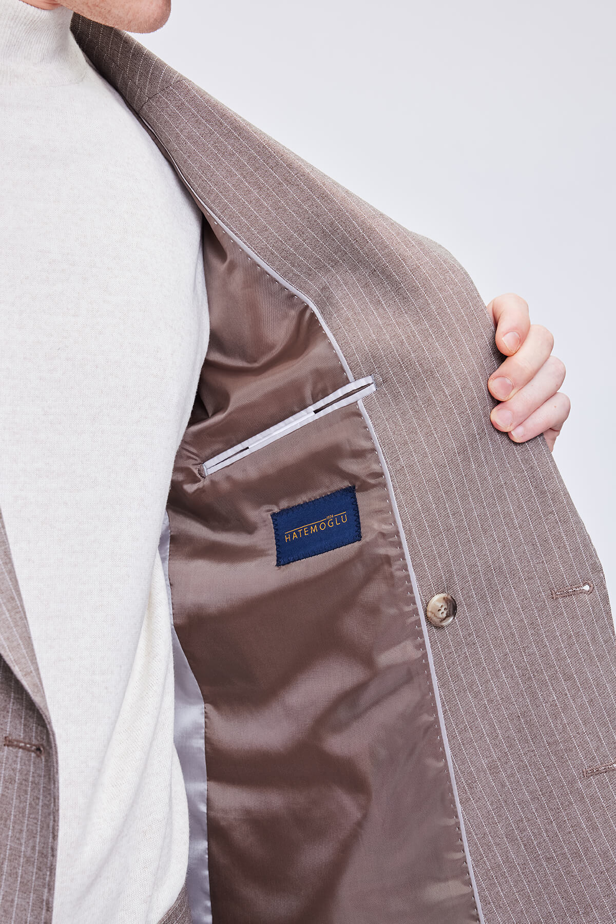 Kahverengi Slim Fit Çizgili Kruvaze Klasik Takım Elbise
