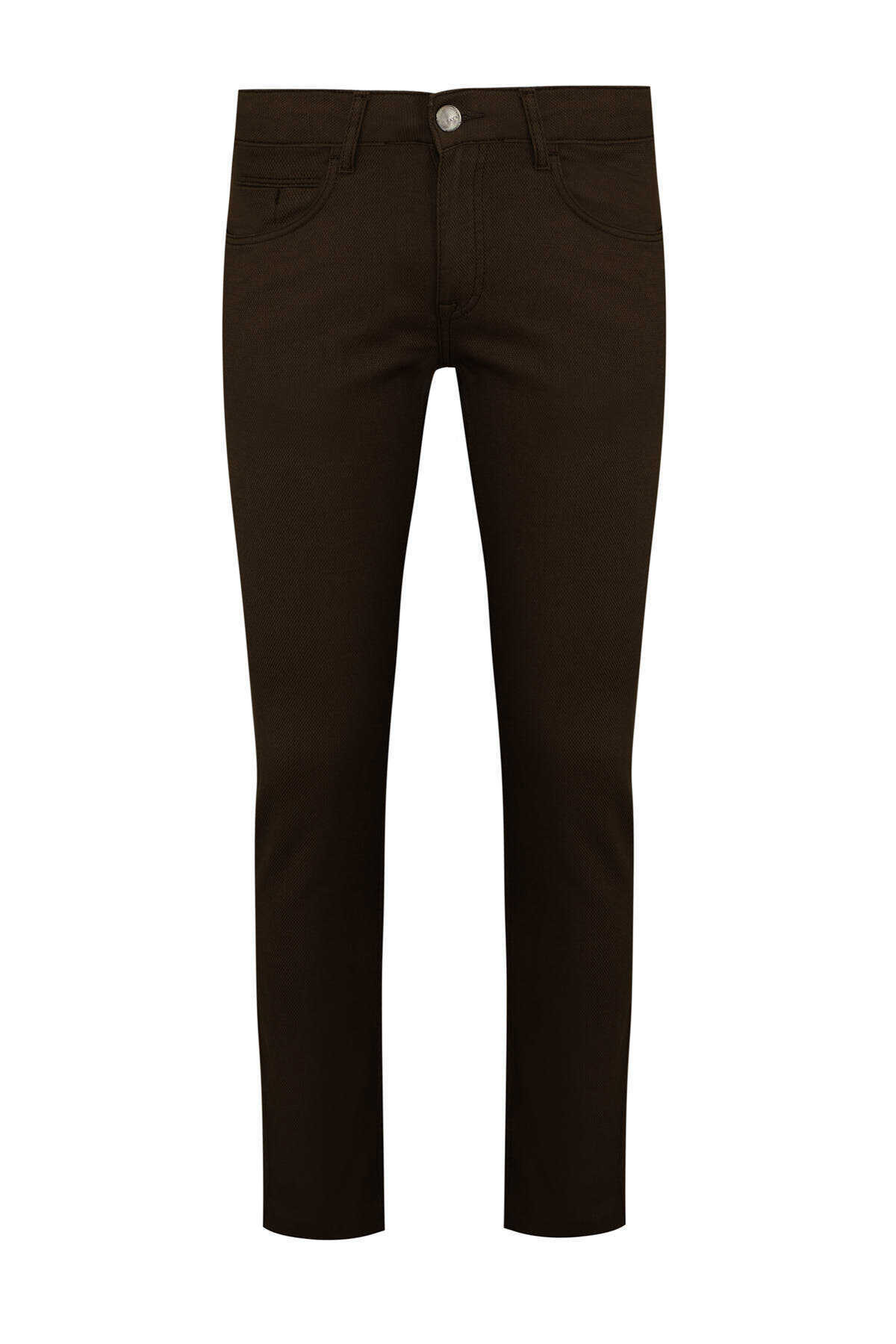 Kahverengi Slim Fit Desenli Pamuklu 5 Cep Kanvas Pantolon