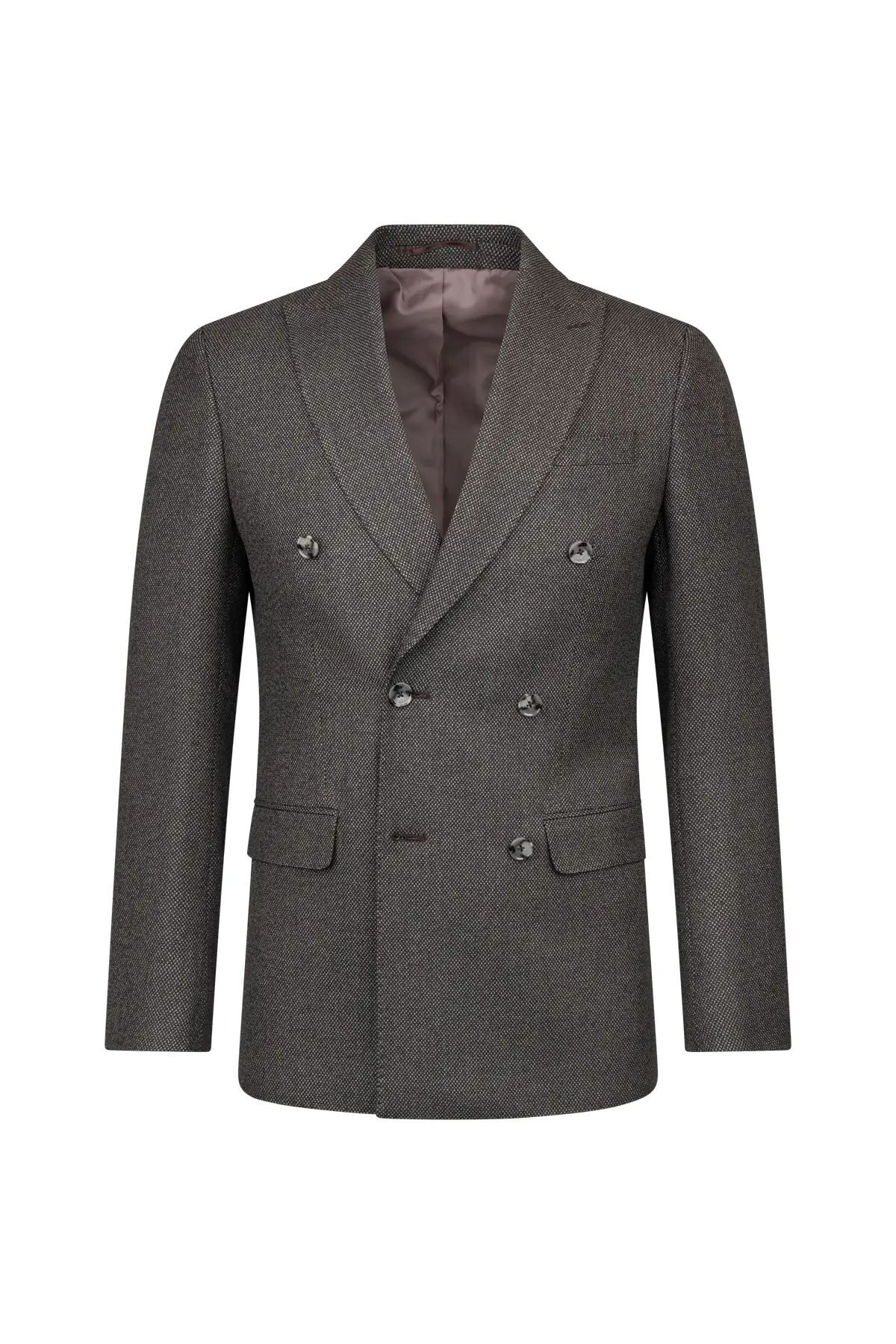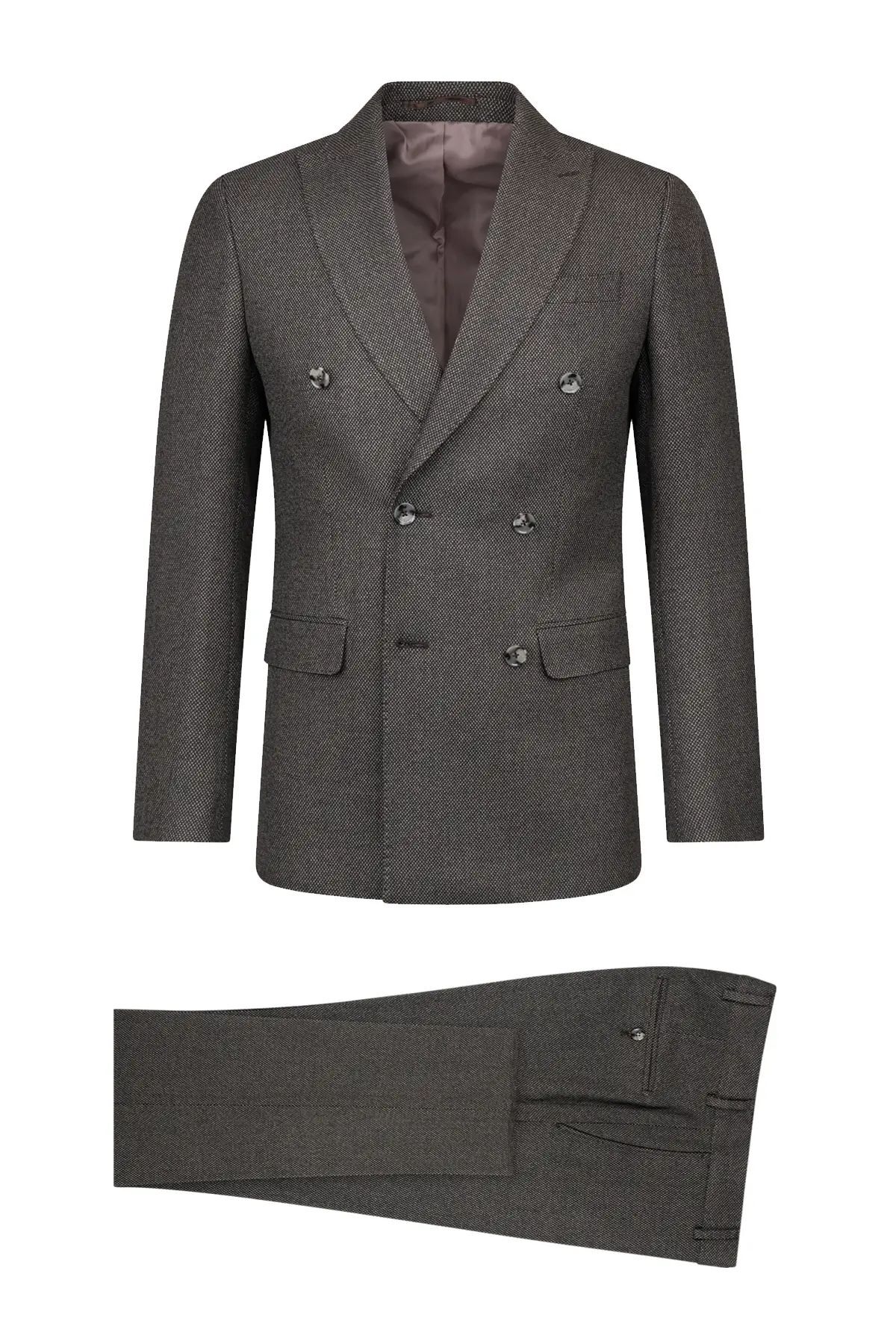 • Kahverengi Slim Fit Kruvaze Klasik Takım Elbise, kahverenginin sıcak tonunu kruvaze tasarımı ve desenli dokusuyla buluşturan, modern ve şık bir seçenektir. Slim Fit kalıp vücuda zarifçe oturur ve klasik çizgiyi öne çıkarır.