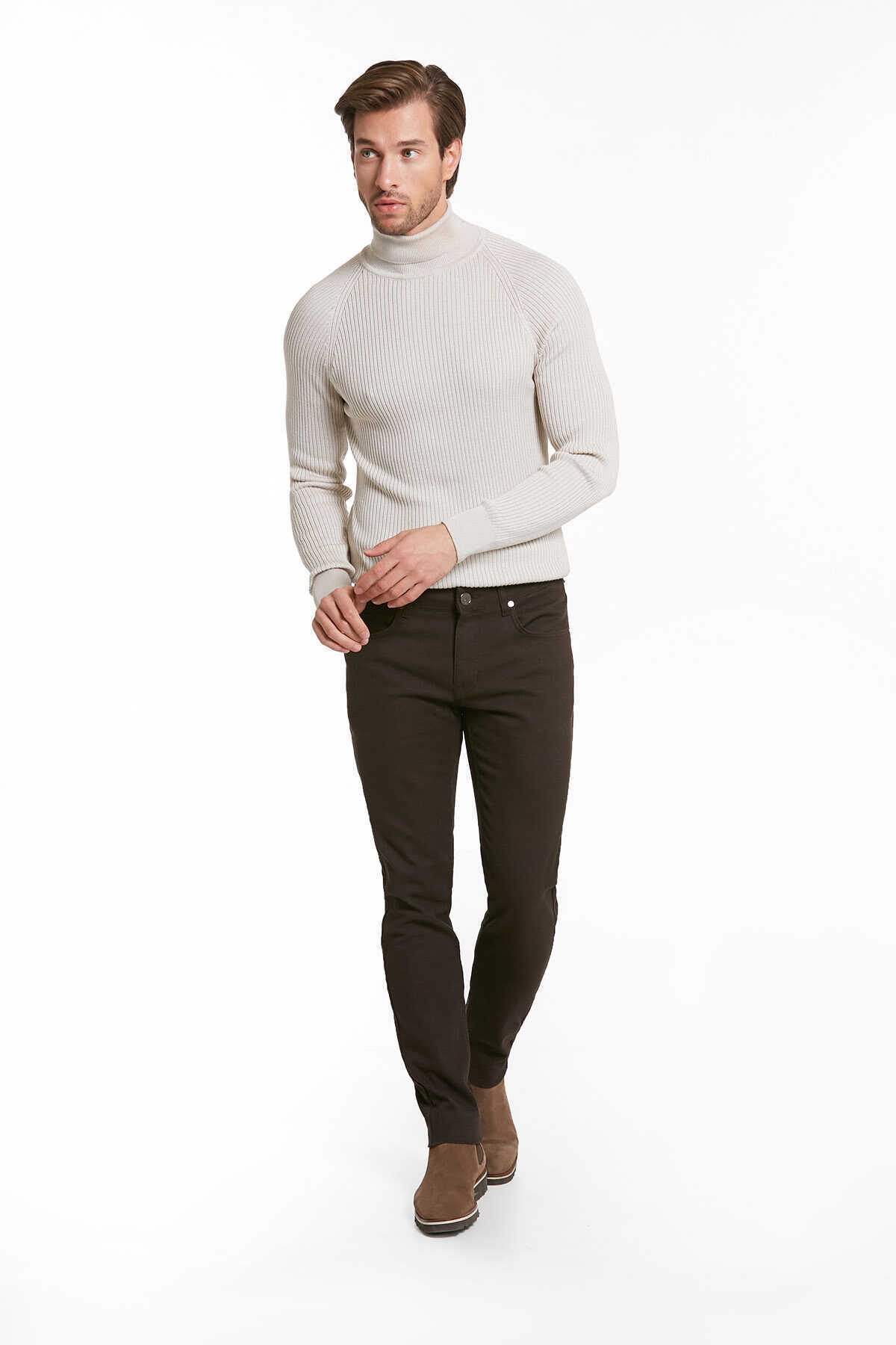 Kahverengi Slim Fit Desenli Pamuklu 5 Cep Kanvas Pantolon