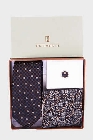 Kahverengi Yaka Pimi Kravat Mendil Set
