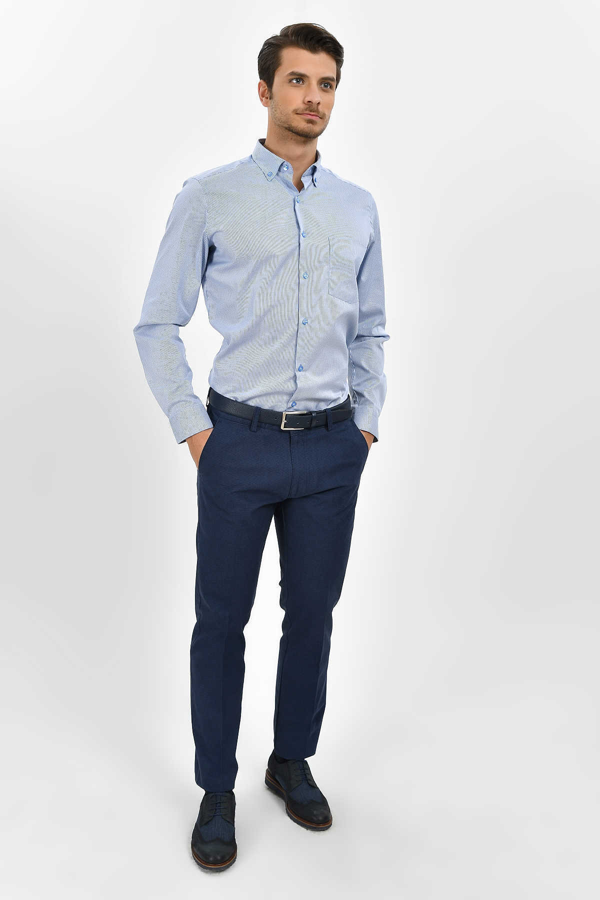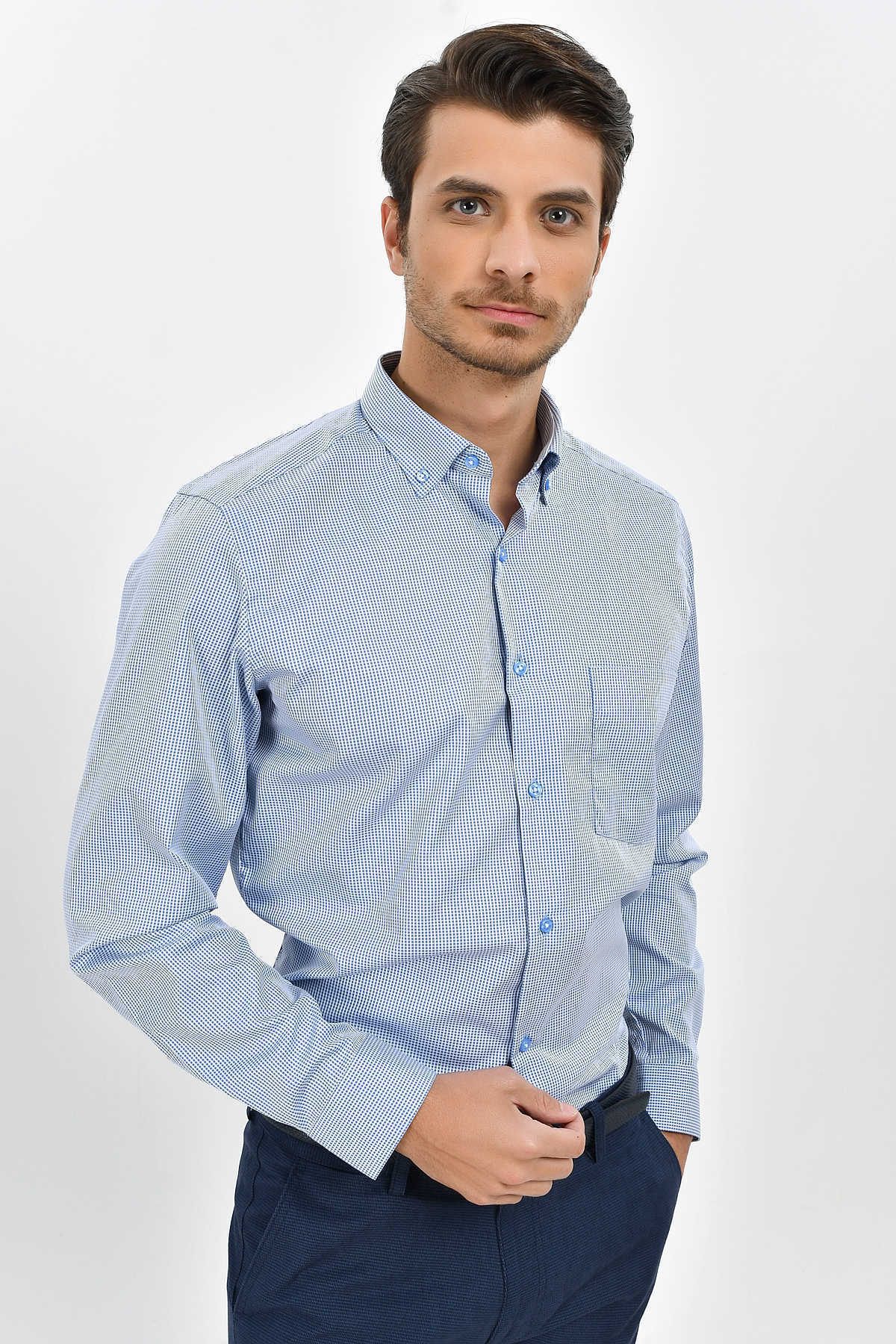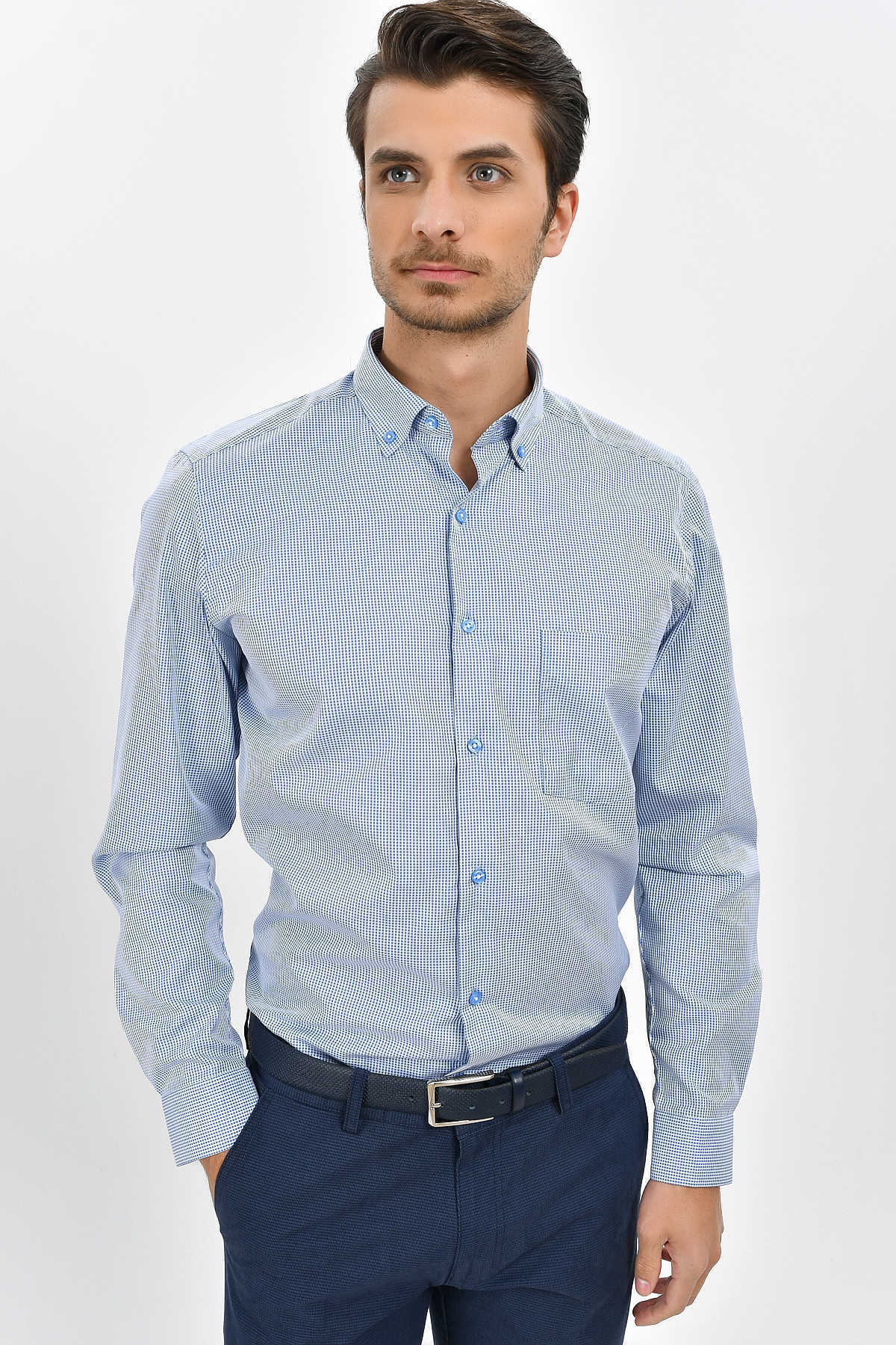 Kareli Regular Mavi Gömlek