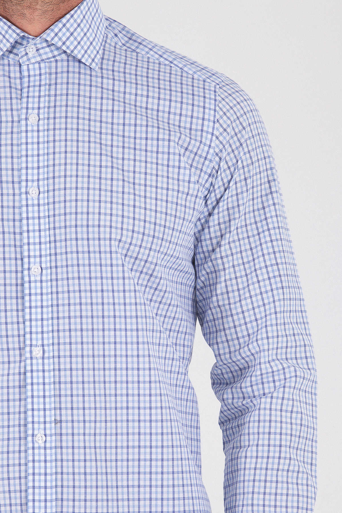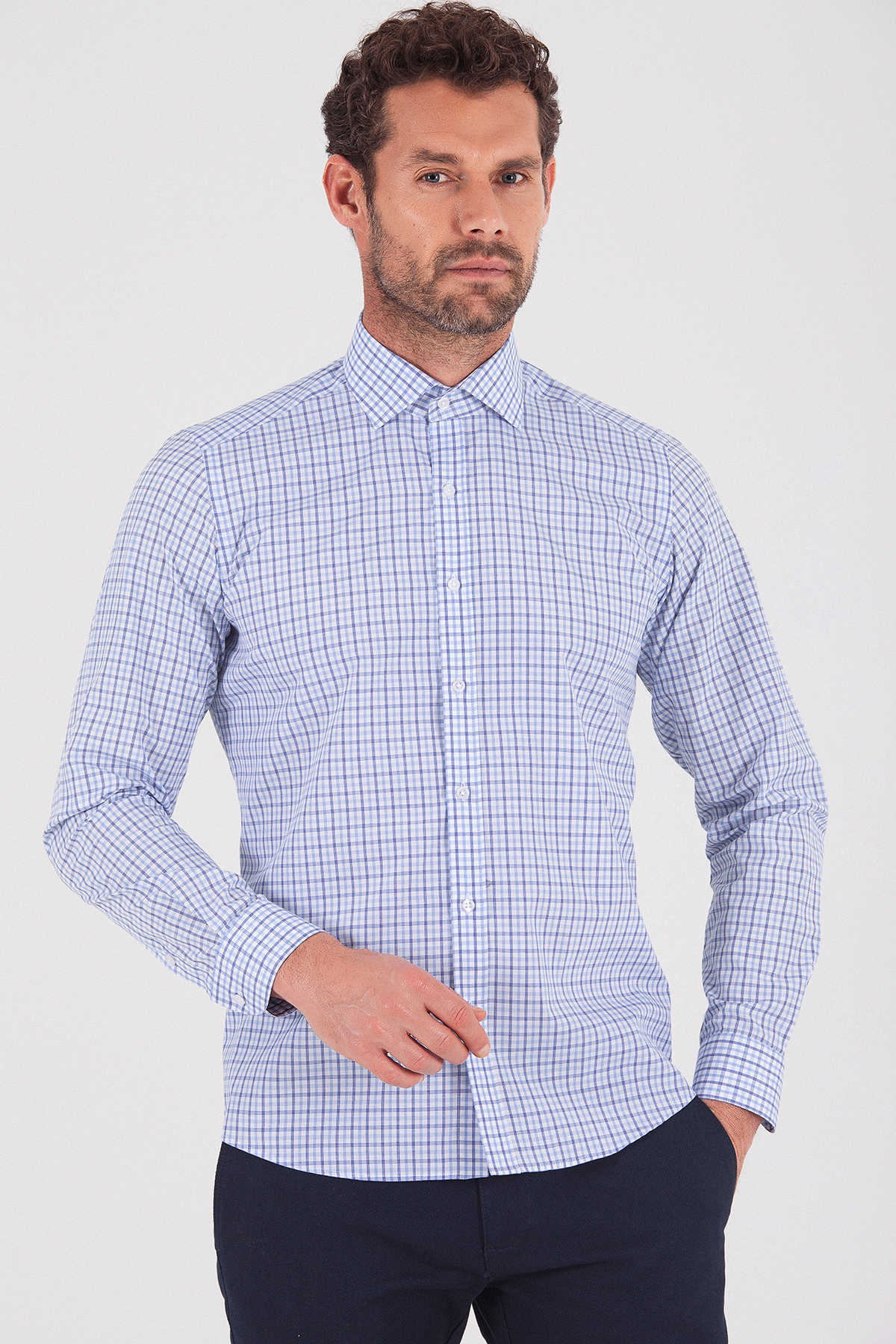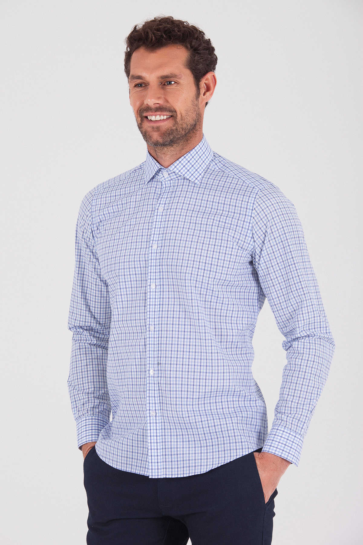 Lacivert Slim Fit Düz Pamuklu Uzun Kol Spor Gömlek