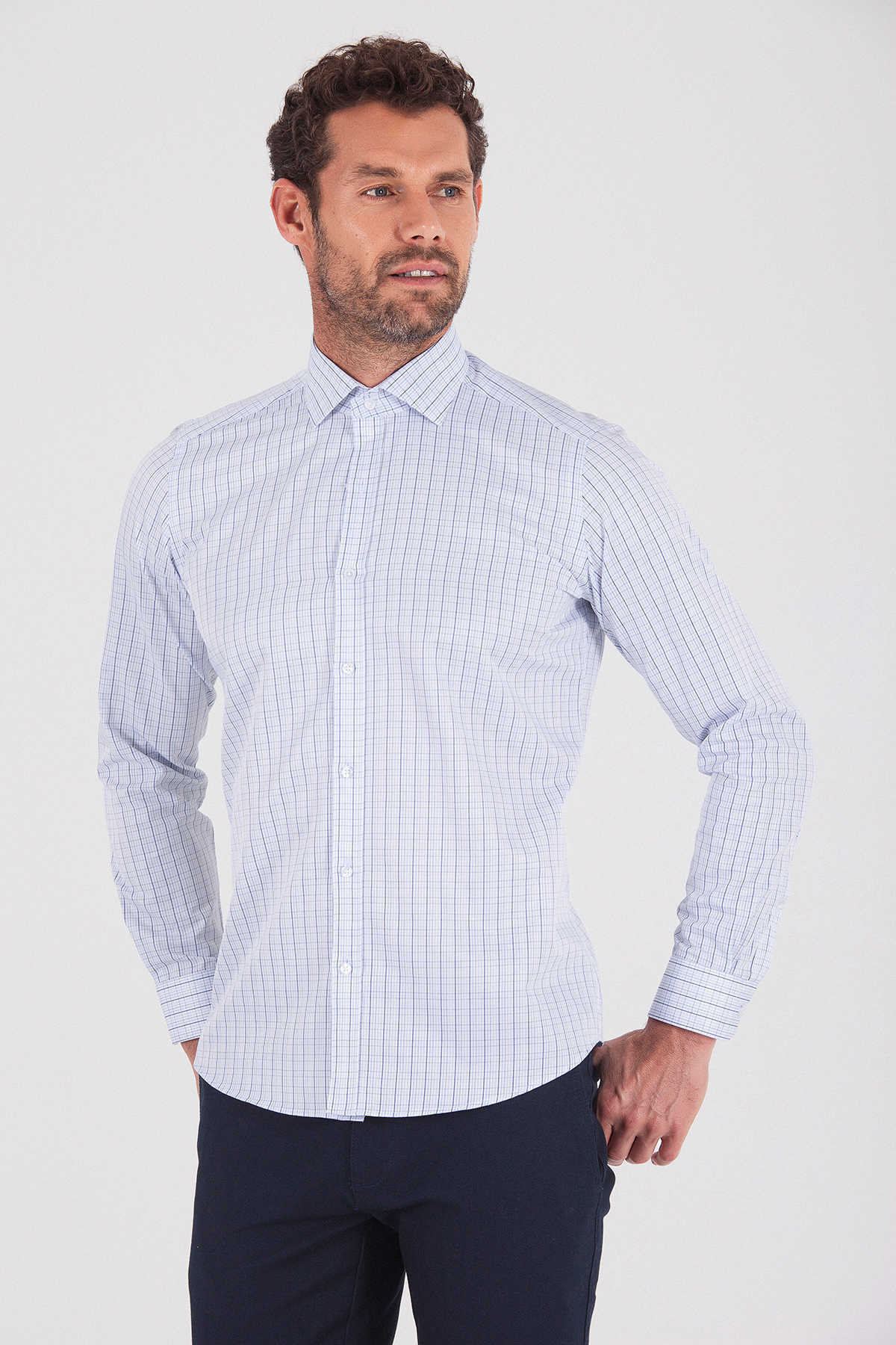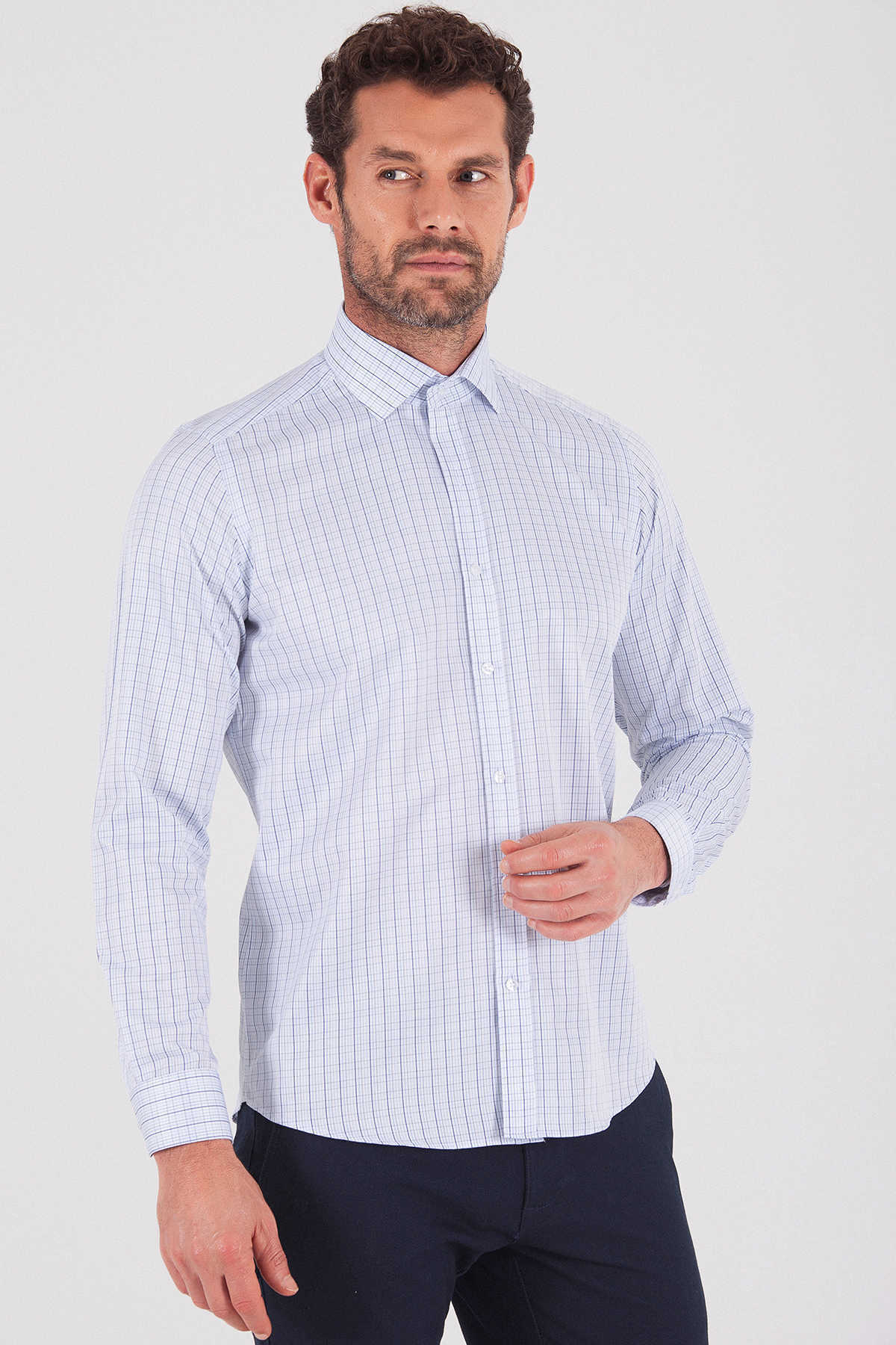 Mavi Slim Fit Pamuklu Uzun Kol Spor Gömlek