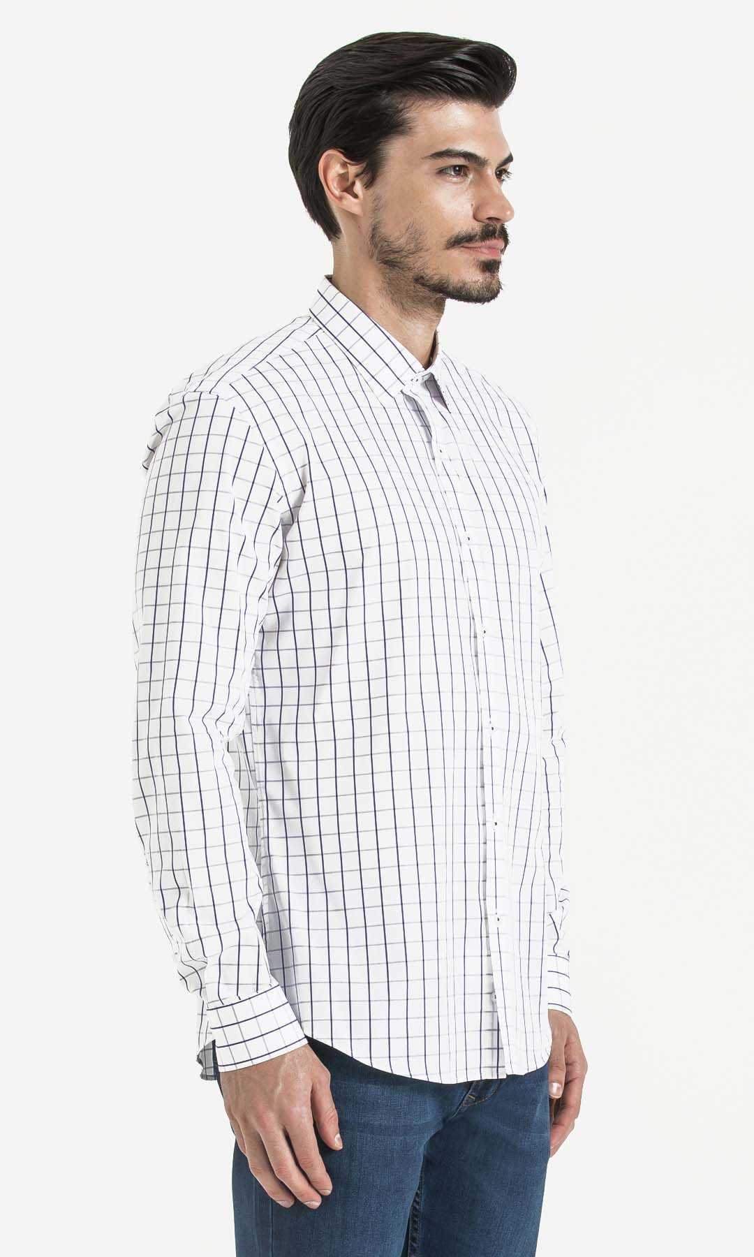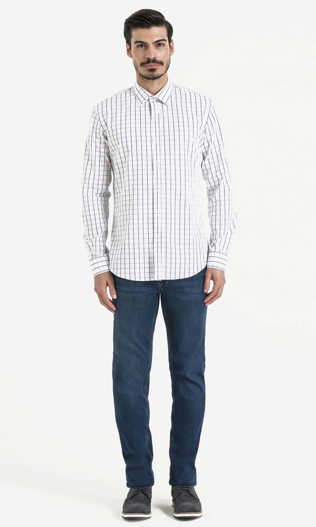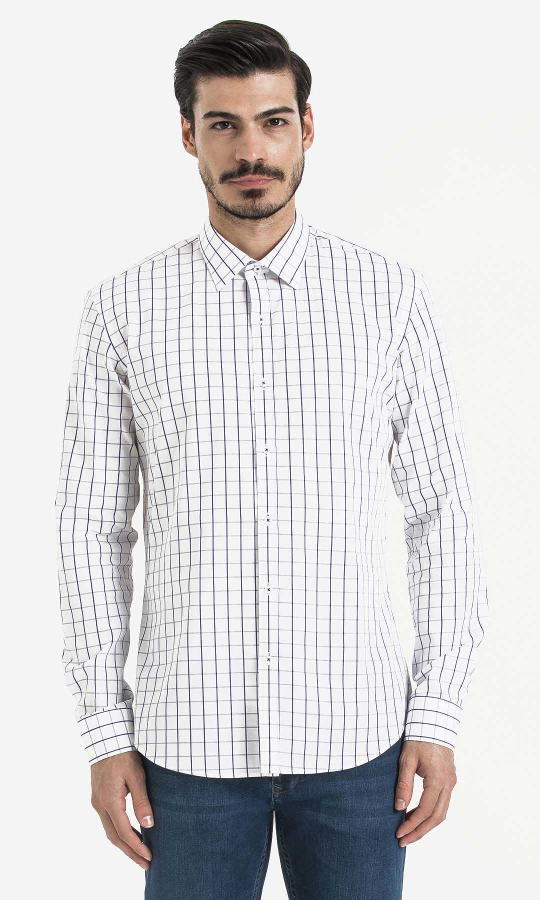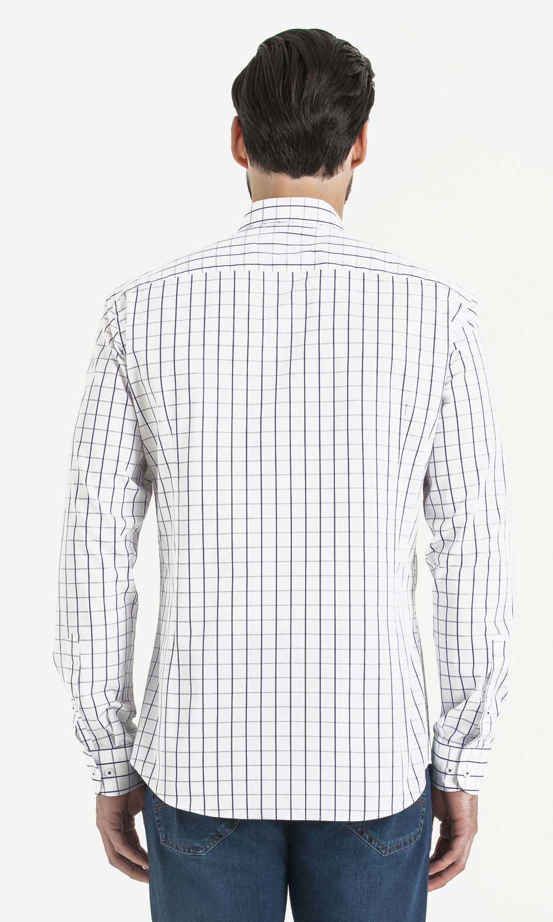 Mor Slim Fit Kareli 100% Pamuk Uzun Kol Spor Gömlek