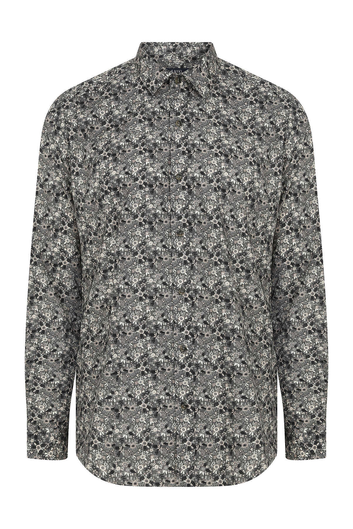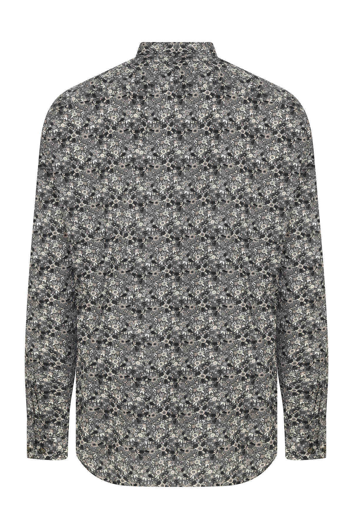 Gri Slim Fit Baskılı 100% Pamuk Uzun Kol Spor Gömlek