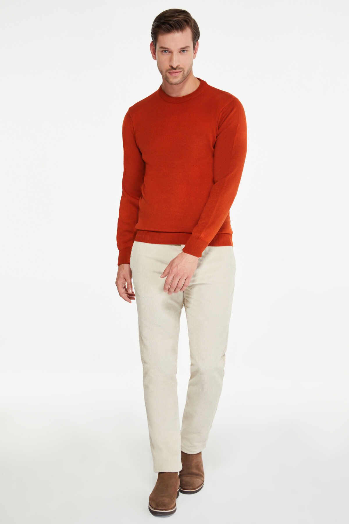 Kiremit Regular Fit Düz Bisiklet Yaka Triko Kazak