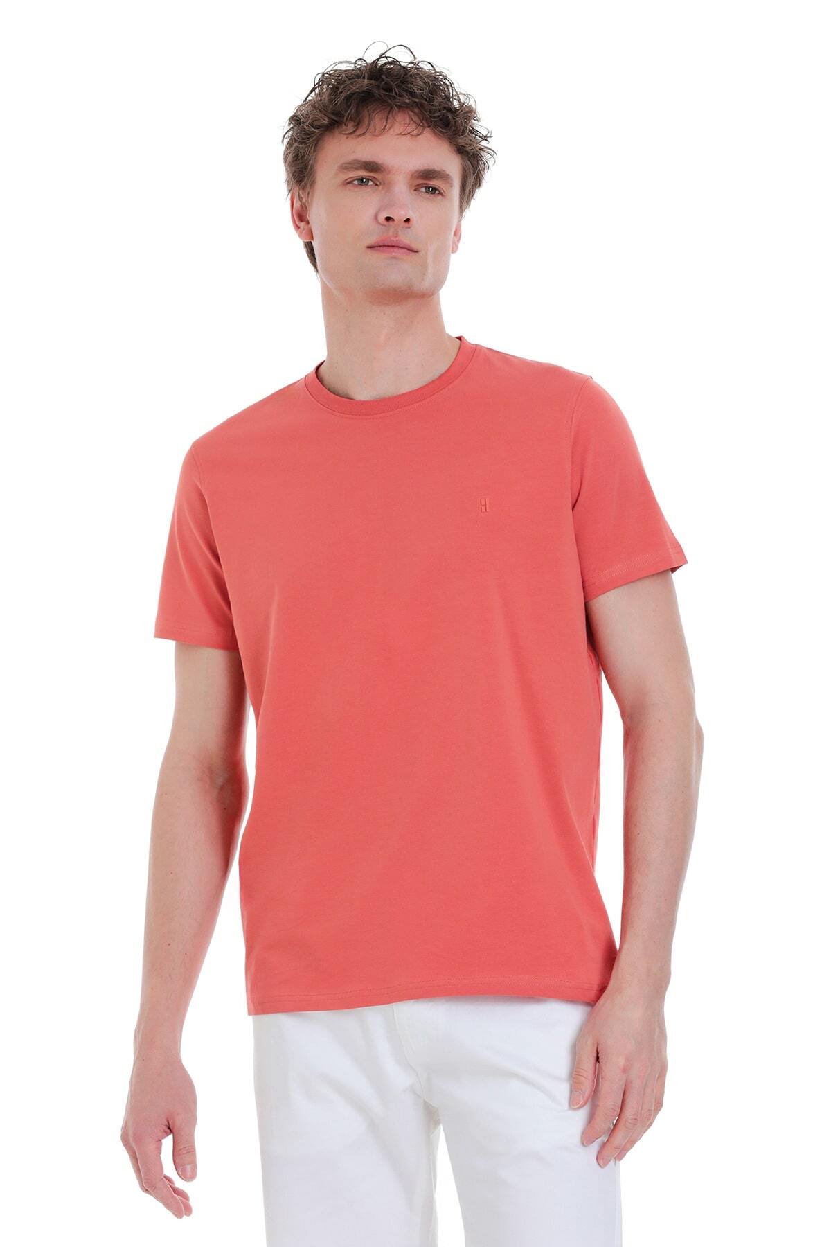 Kiremit Regular Fit Bisiklet Yaka Pamuklu Tişört