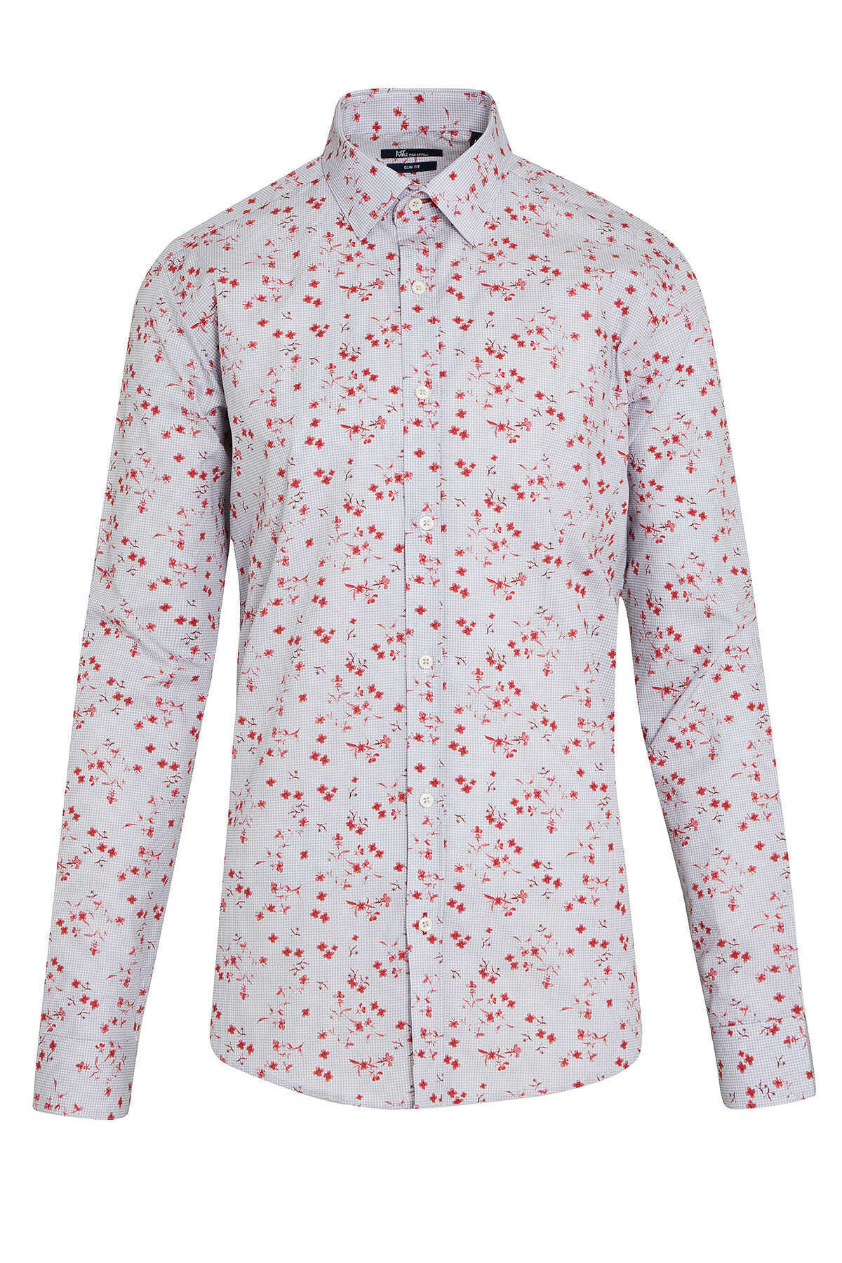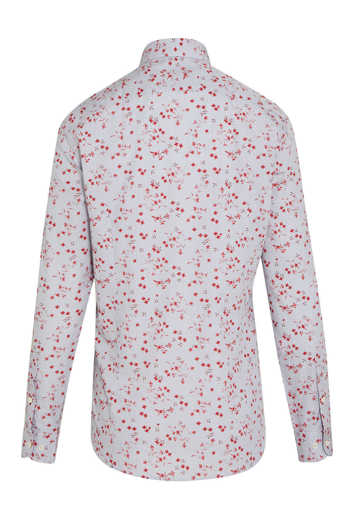 Kırmızı Slim Fit Baskılı 100% Pamuk Slim Yaka Uzun Kollu Casual Gömlek