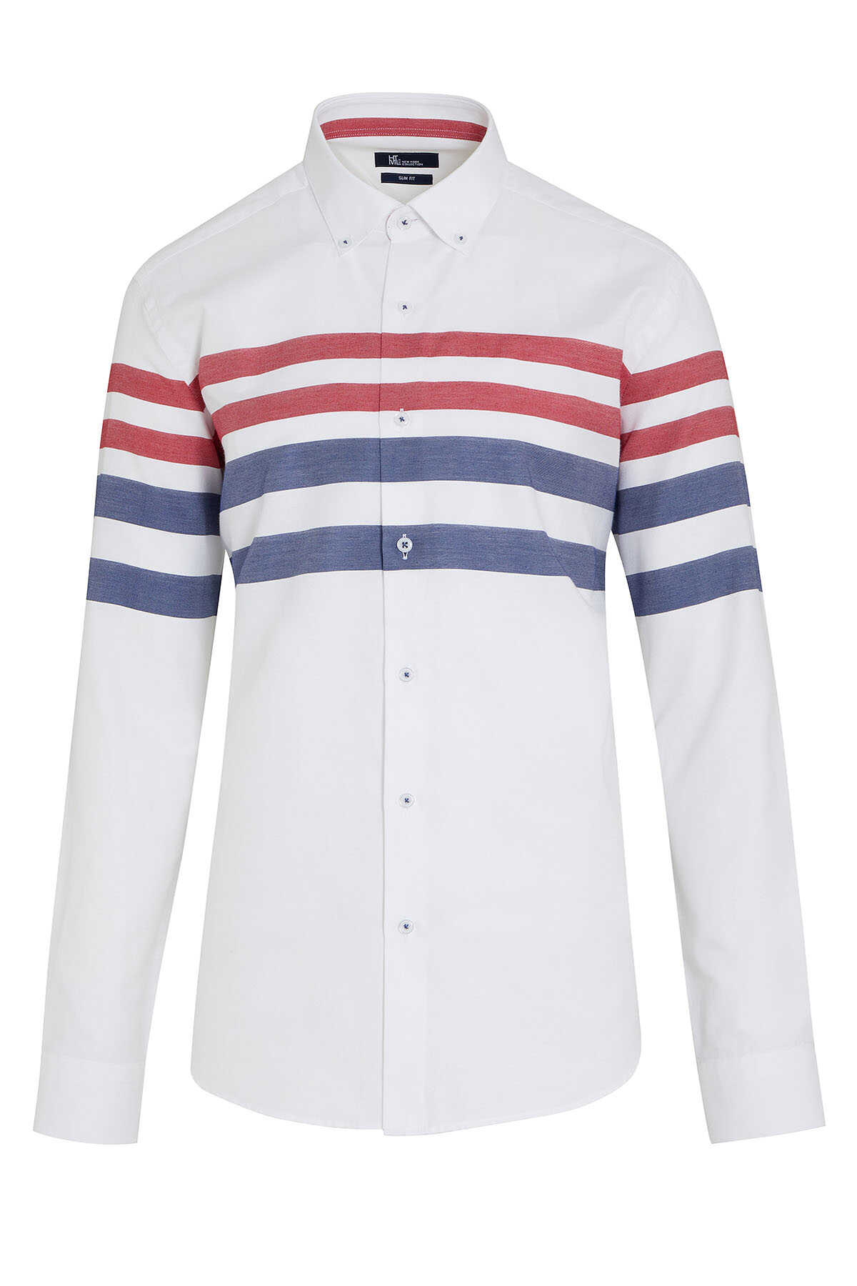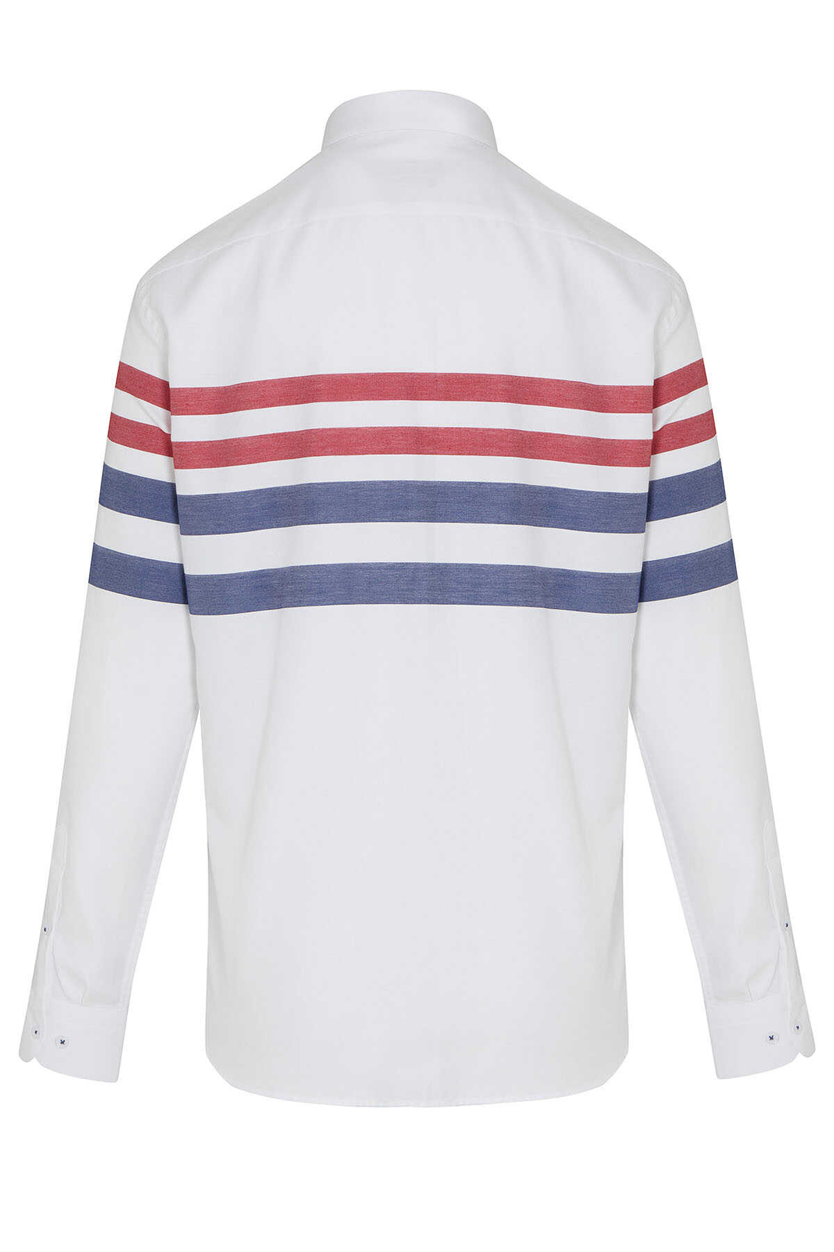 Kırmızı Dinamik Fit Uzun Kol Pamuklu Çizgili Gömlek