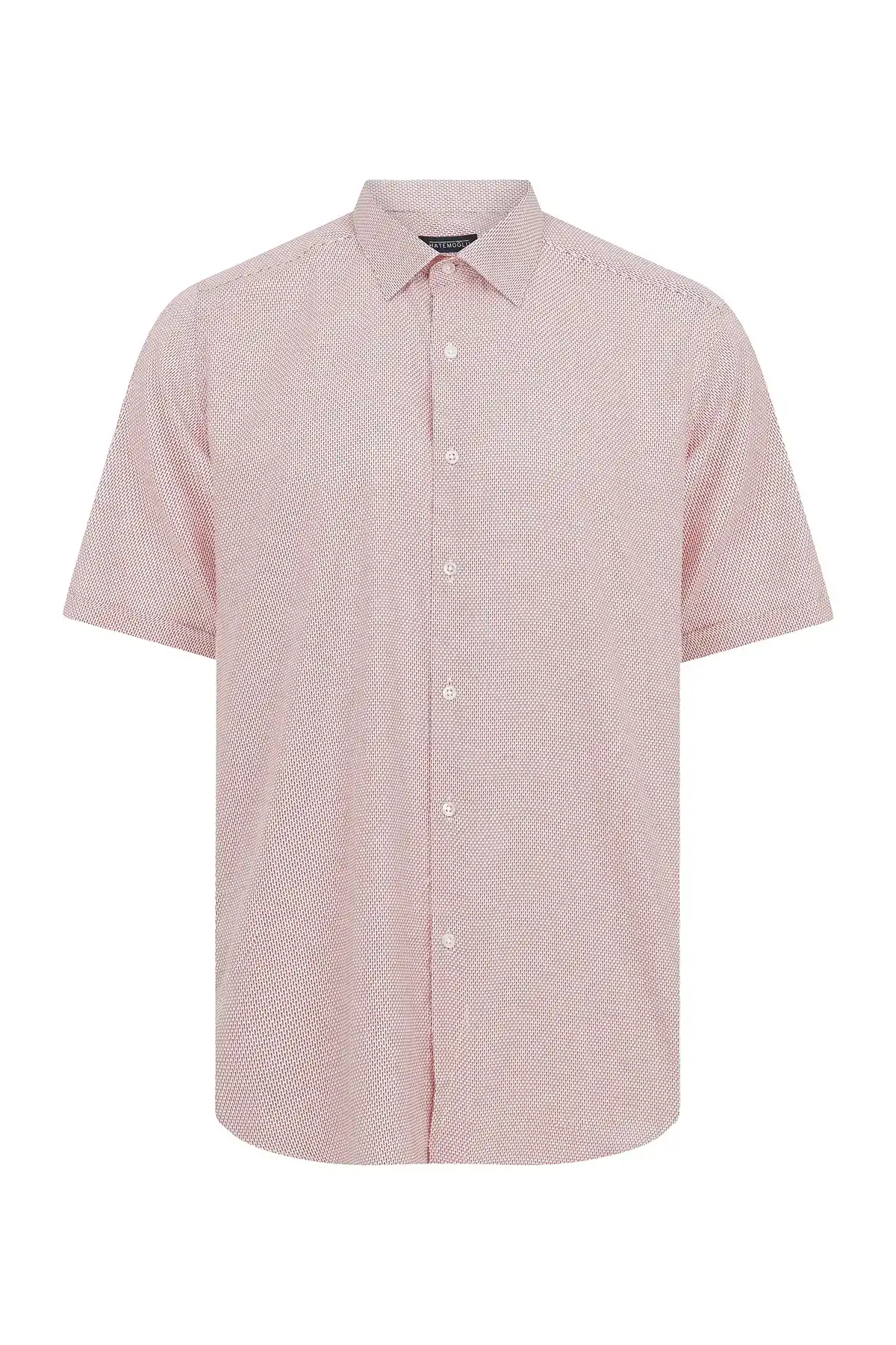 Kırmızı Kısa Kol Armürlü Klasik Gömlek