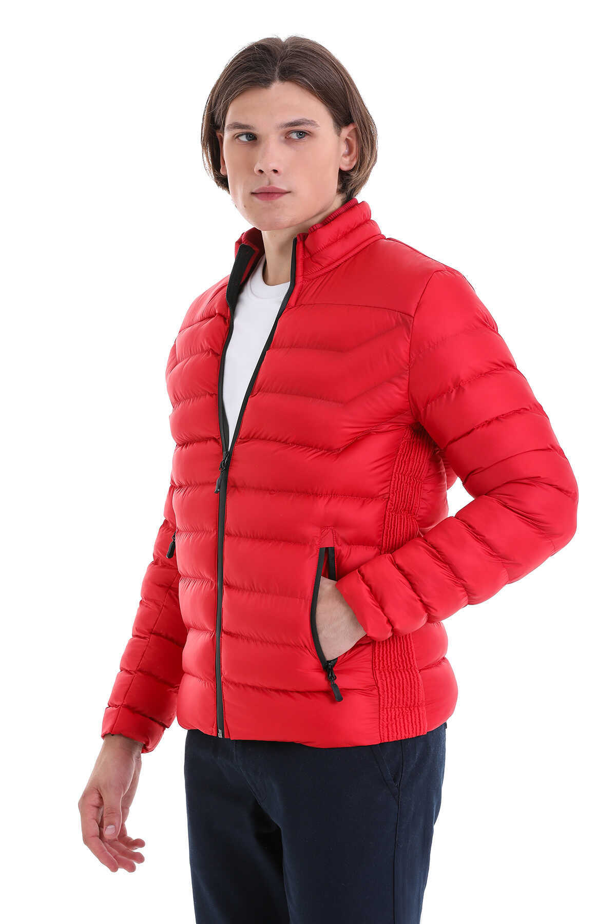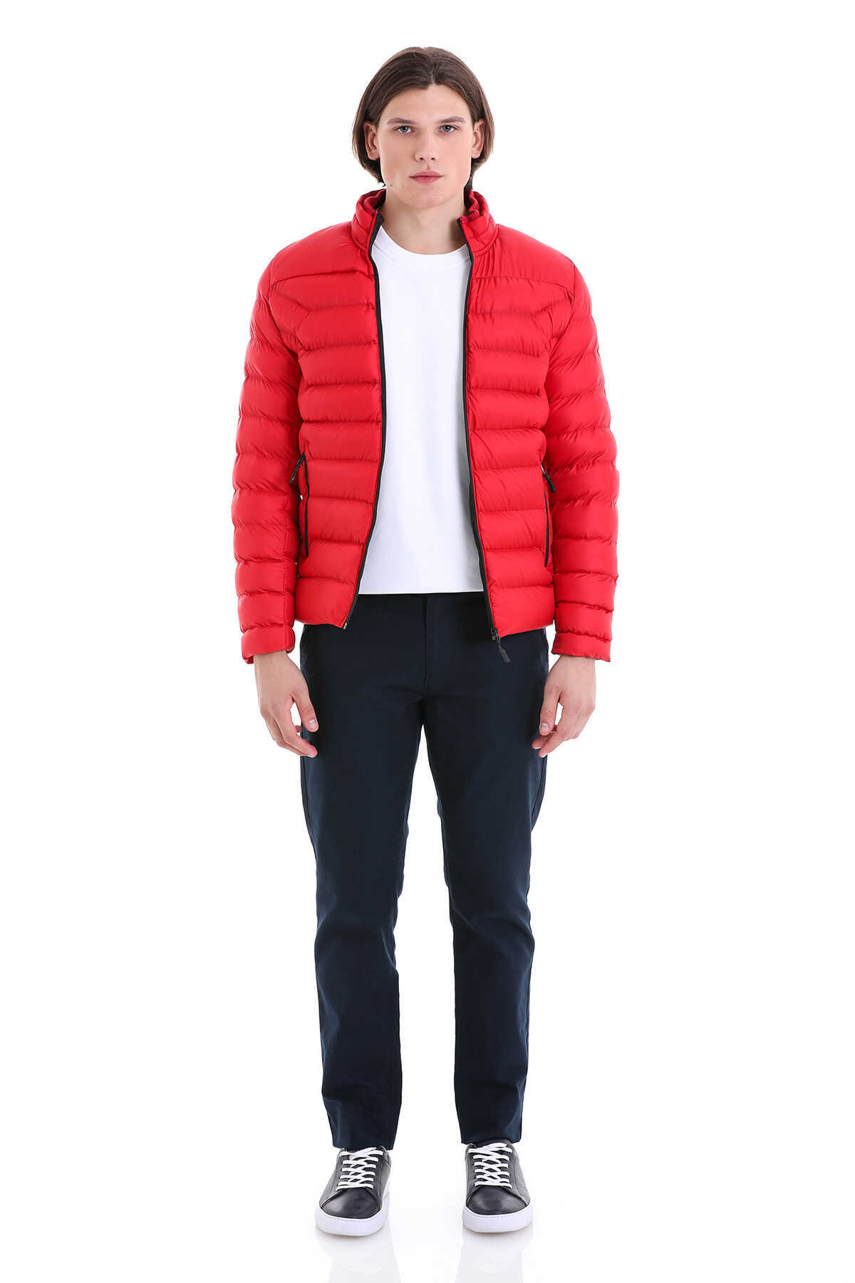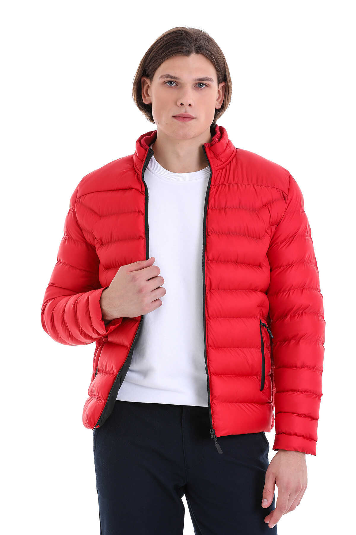 Kırmızı Ekstra Slim Fit Hakim Yaka Şişme Mont