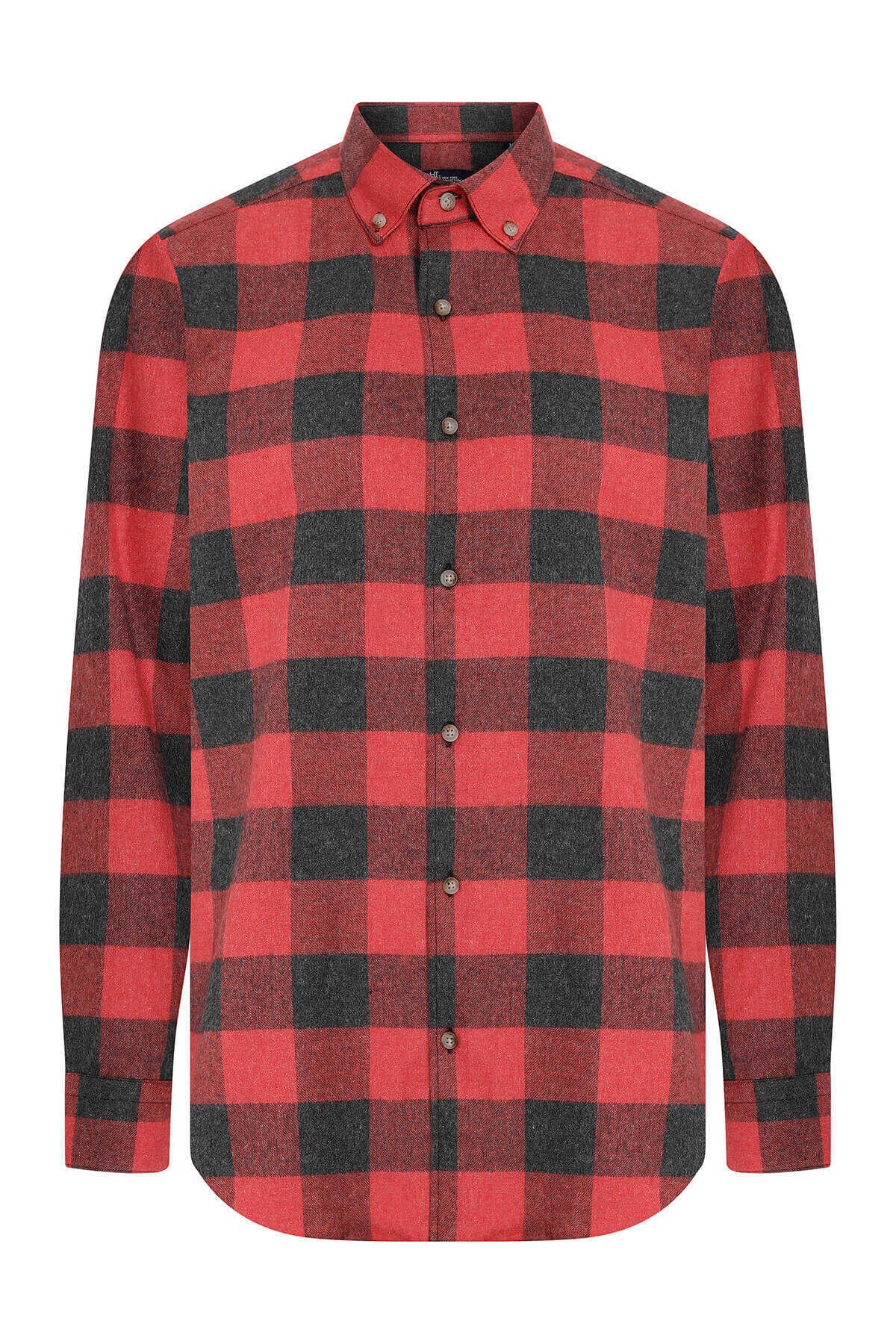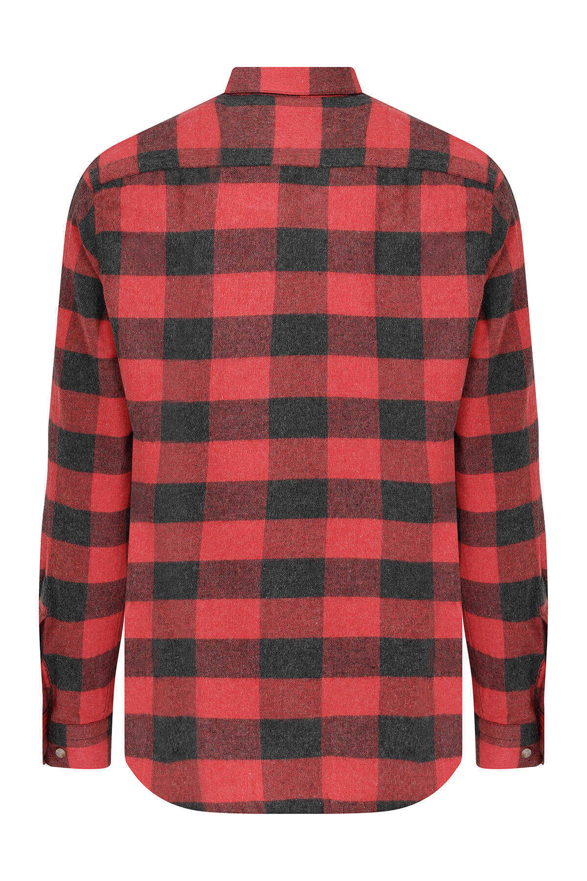 Kırmızı Slim Fit Kareli Pamuklu Uzun Kol Gömlek