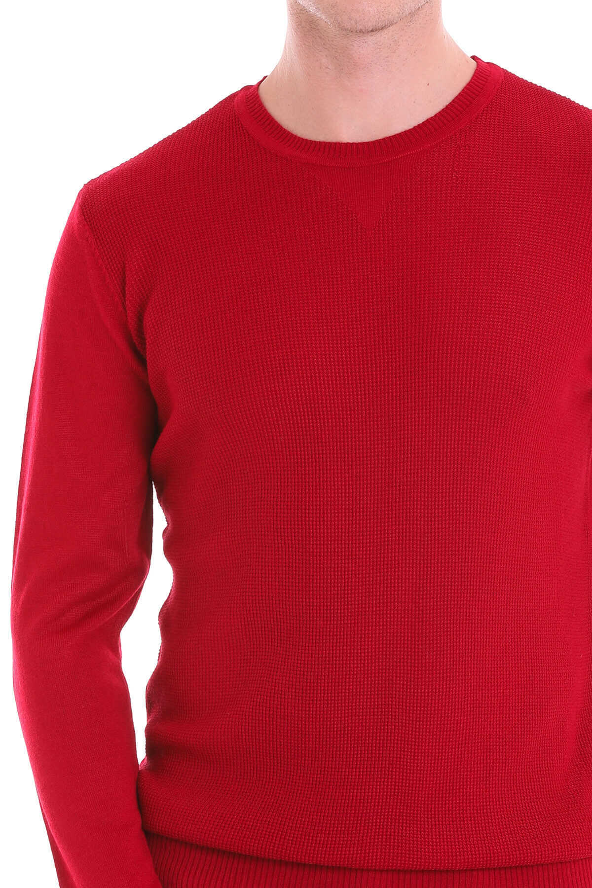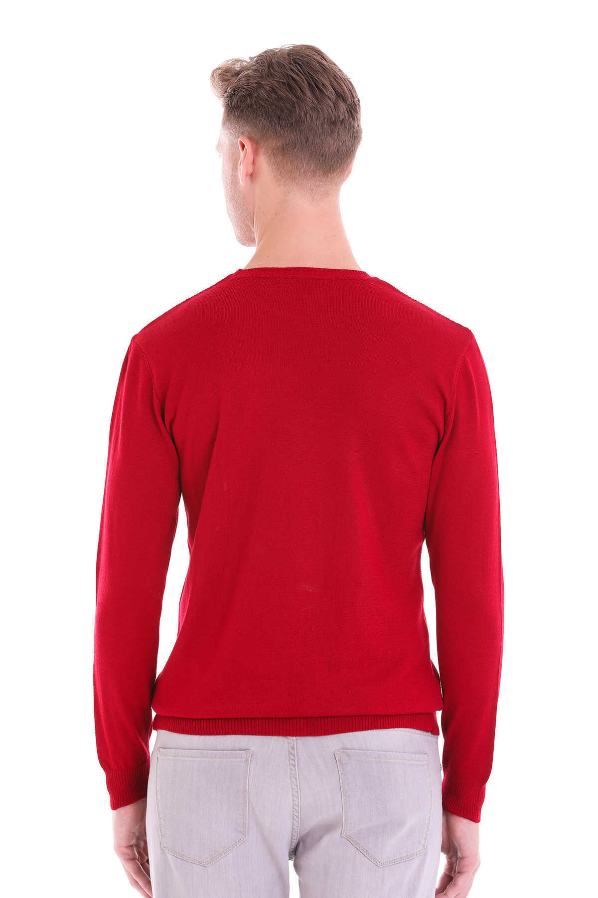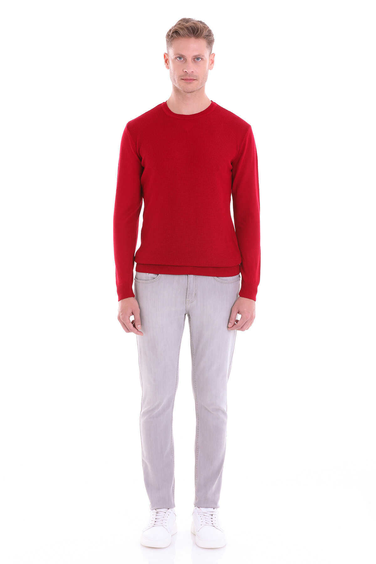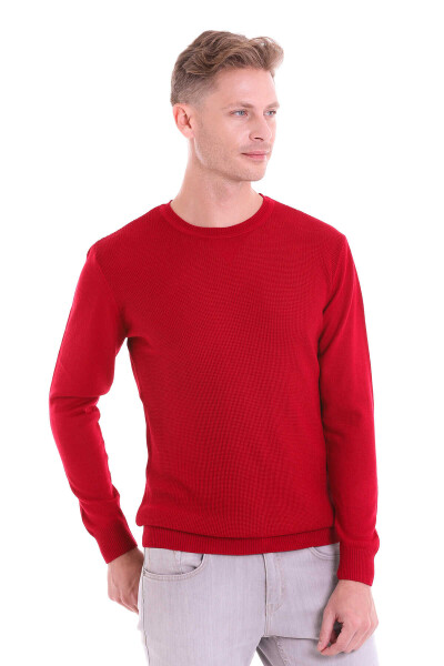 Kırmızı Comfort Fit Pirinç Örgü Desenli Bisiklet Yaka Yünlü Kazak - 12
