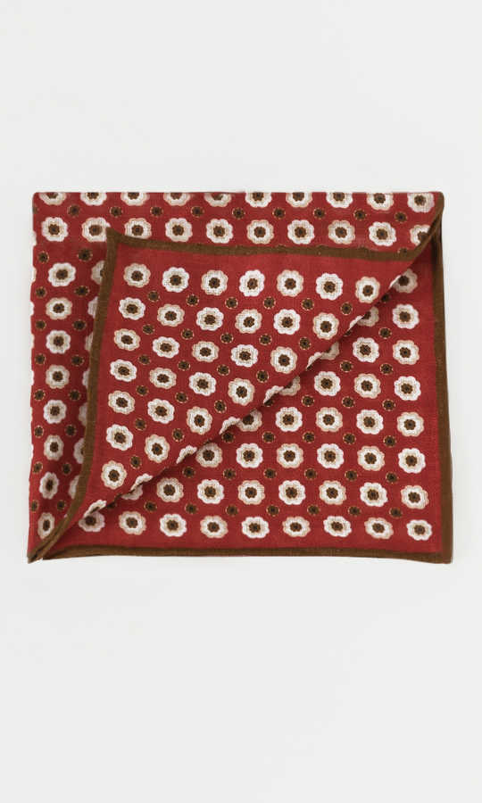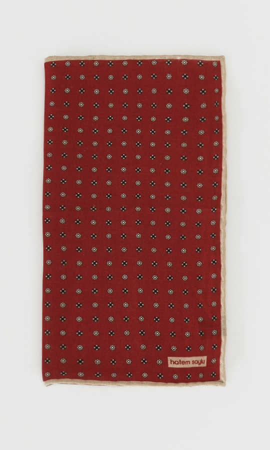 Desenli Kırmızı Keten Mendil