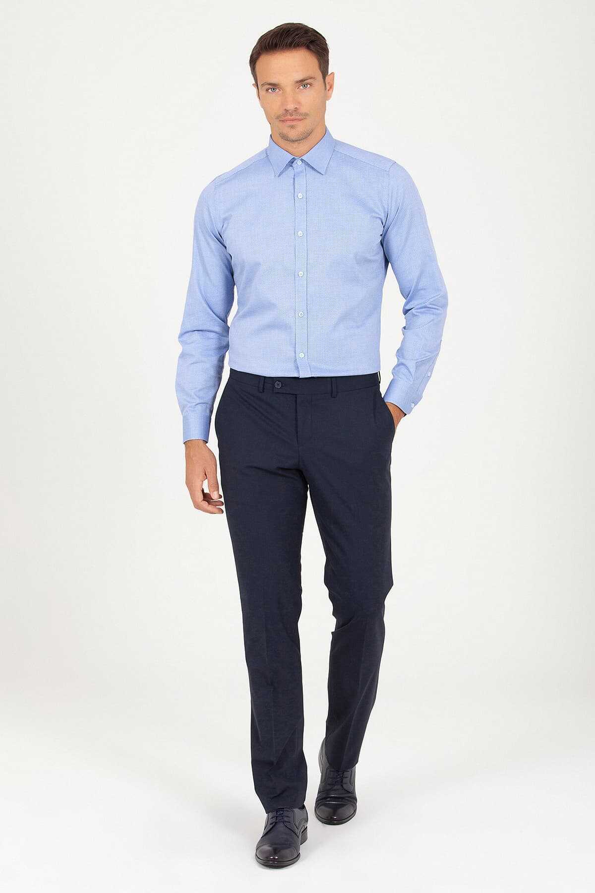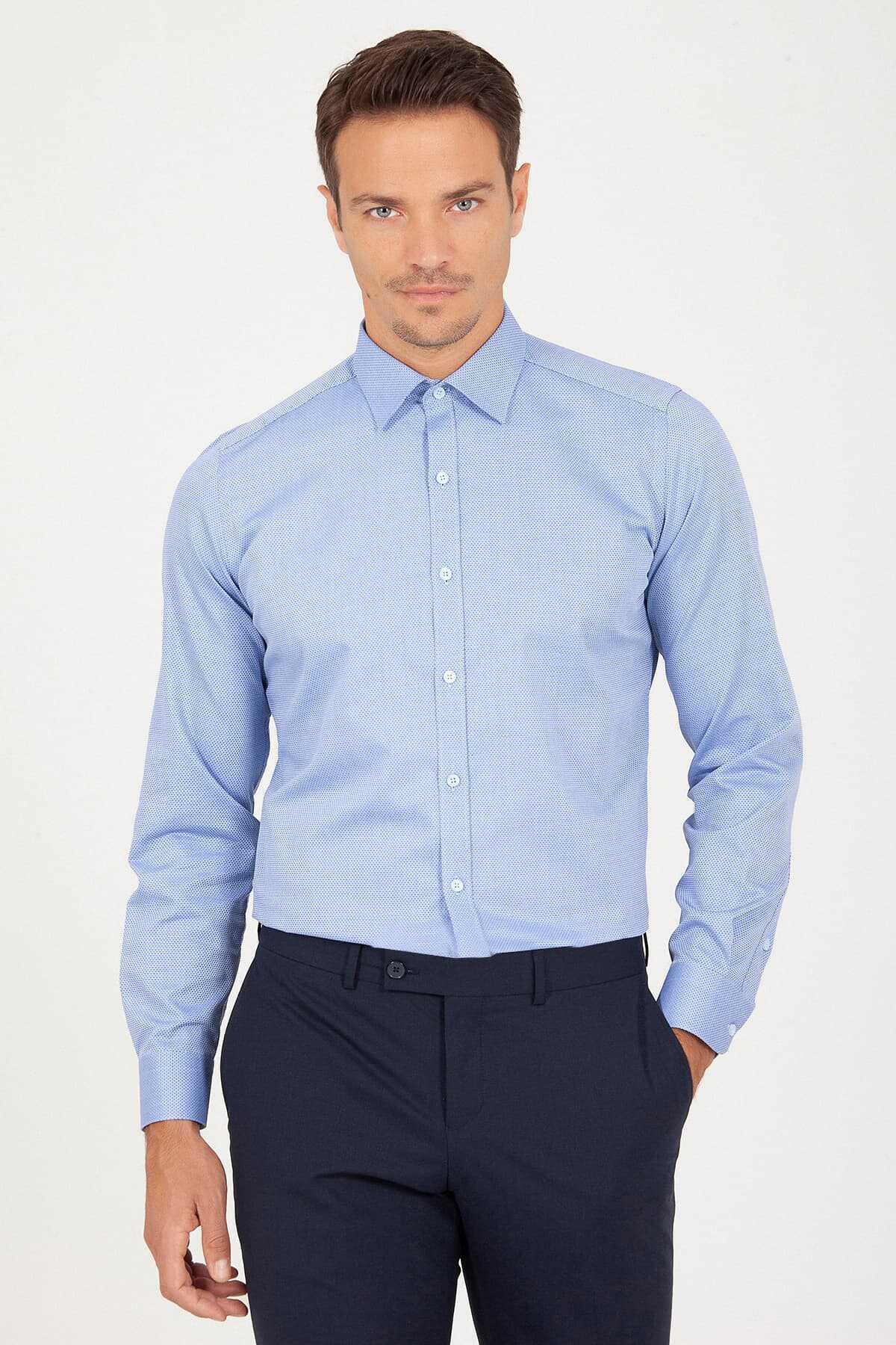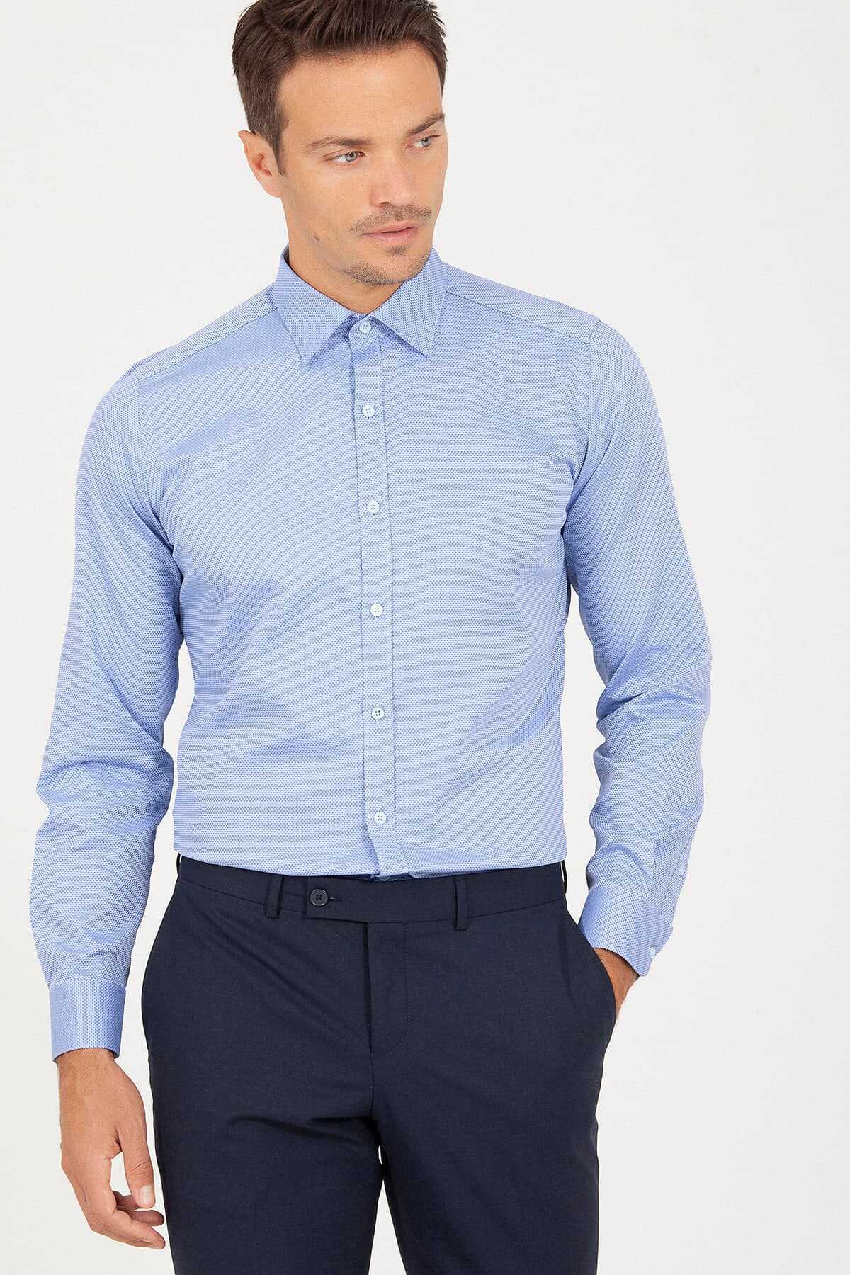 Mavi Slim Fit Desenli 100% Pamuk Uzun Kol Spor Gömlek