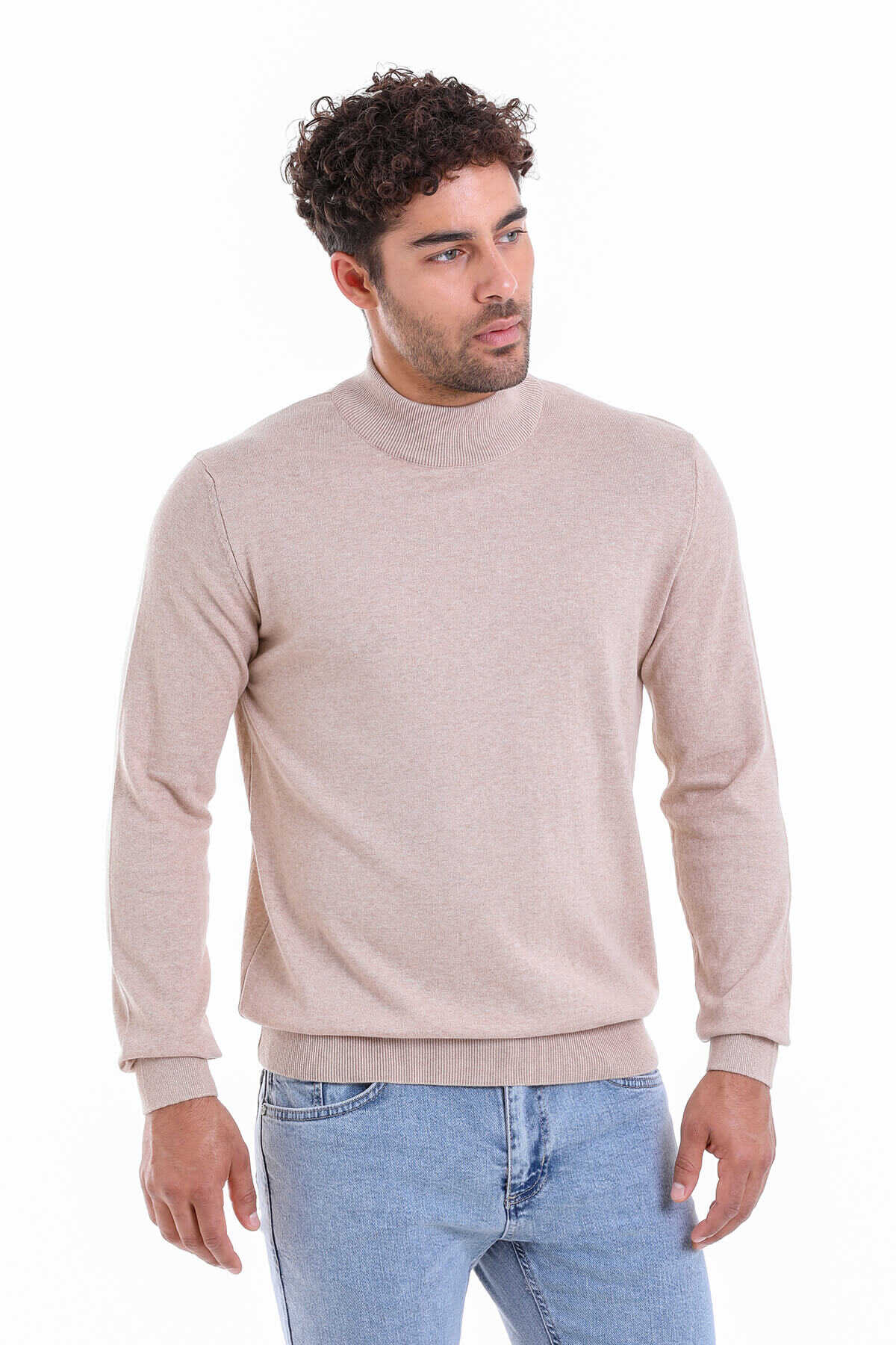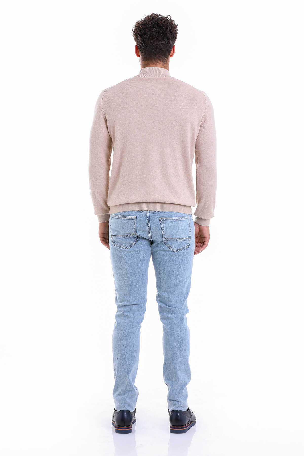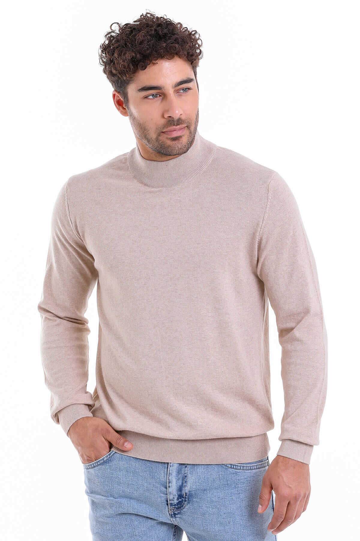 Bej Regular Fit Düz 100% Pamuk Yarım Balıkçı Yaka Triko Kazak