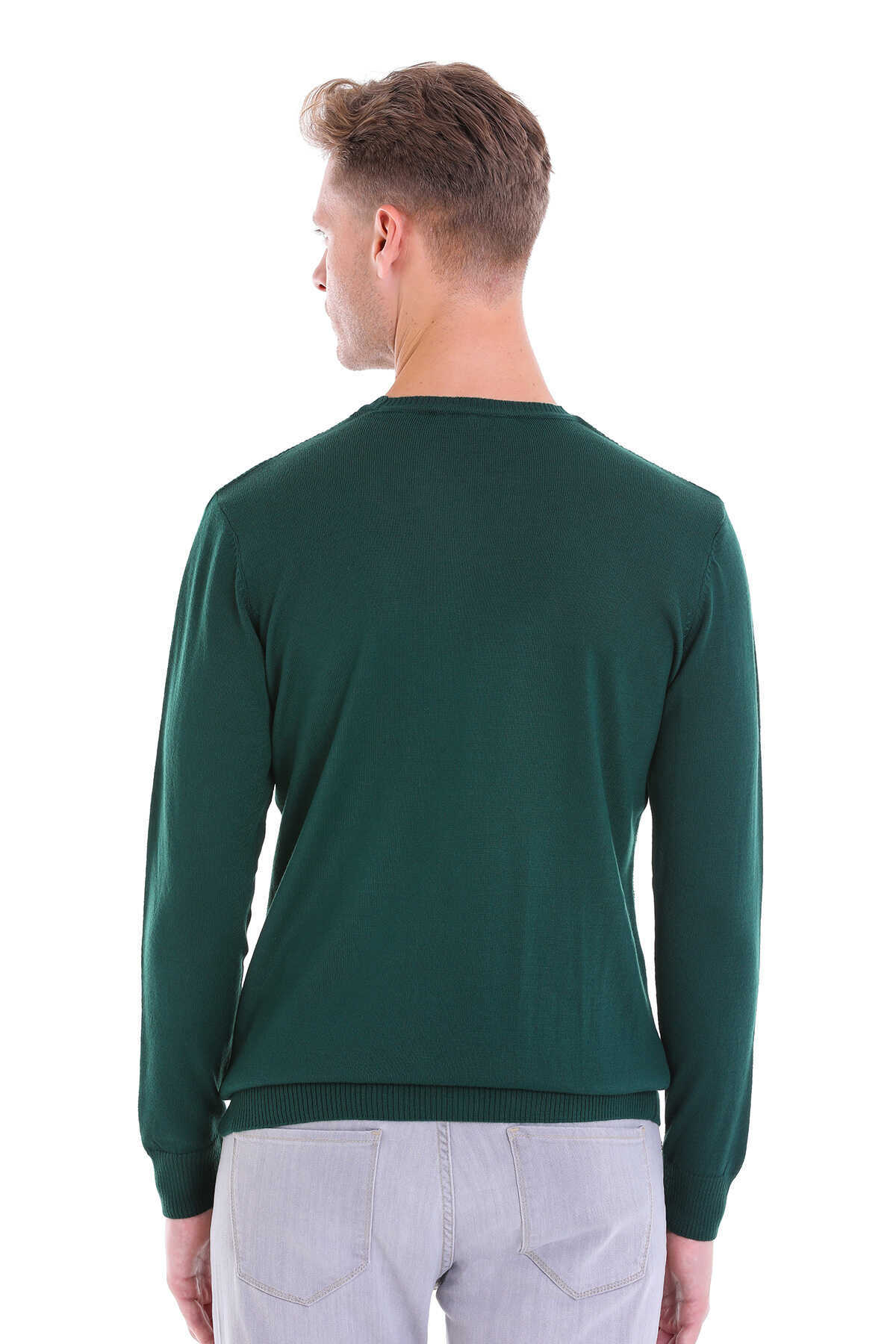 Yeşil Comfort Fit Pirinç Örgü Desenli Bisiklet Yaka Yünlü Kazak - 6